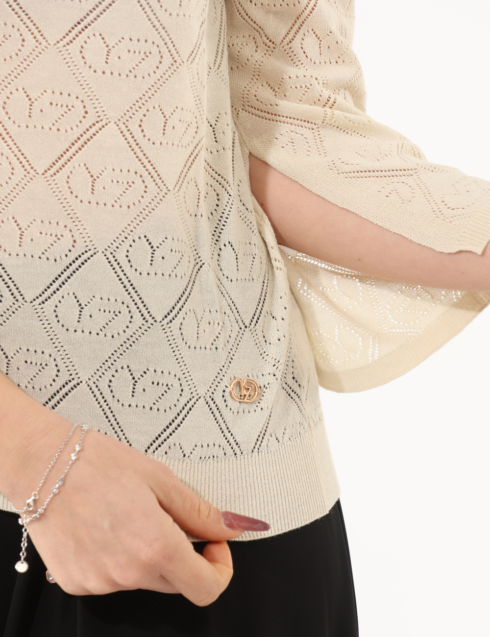 Realizzata in 89% viscosa e 11% poliamide, offre una texture morbida e leggera sulla pelle, ideale per le temperature più miti. La Maglia con Tessuto traforato, total beige, girocollo classico si distingue per il suo delicato motivo traforato che crea un effetto sofisticato e femminile, senza rinunciare alla semplicità del taglio. Il colore beige, neutro e senza tempo, valorizza ogni outfit ed è facile da abbinare. La vestibilità è regolare: la modella è alta 165 cm e indossa la taglia S, per aiutarti a scegliere la misura più adatta a te.
