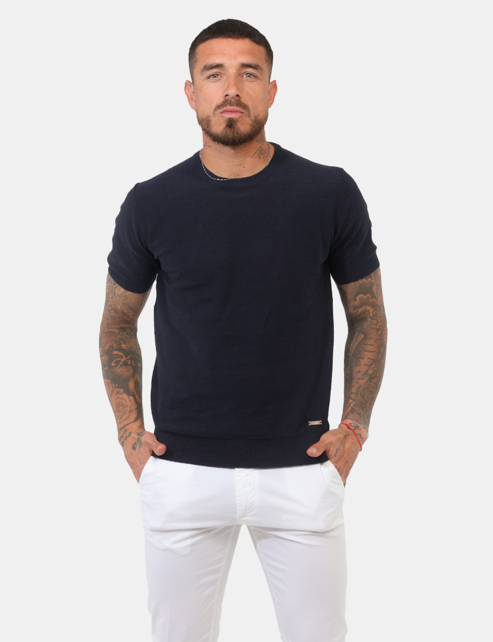 La Maglia YES ZEE Blu è il capo ideale per chi desidera un look fresco e contemporaneo, perfetto per accompagnarti con stile durante la bella stagione. Realizzata in un tessuto naturale composto da 55% lino e 45% cotone, questa maglia da uomo adatta alla stagione primavera estate garantisce traspirabilità, leggerezza e comfort anche nelle giornate più calde.