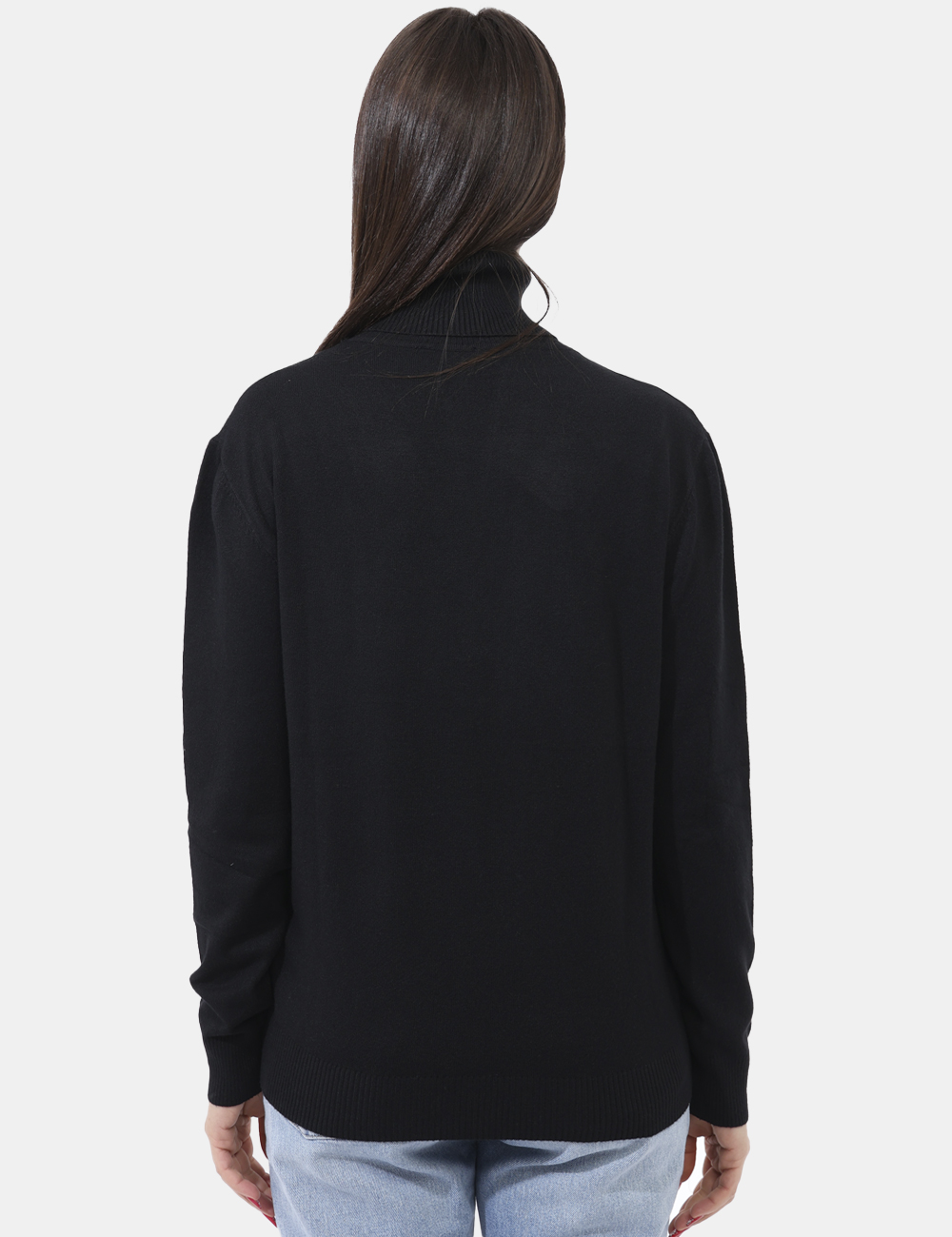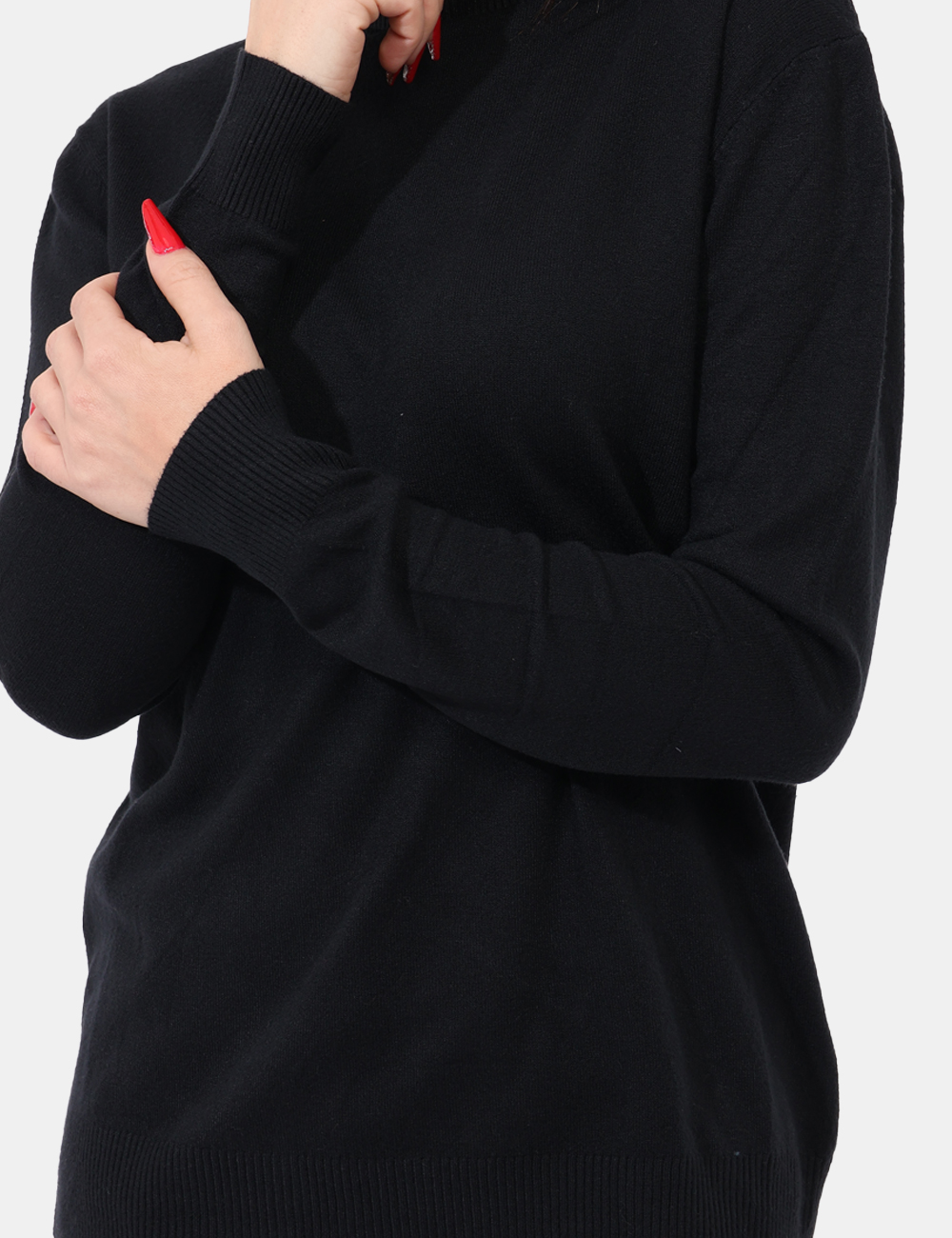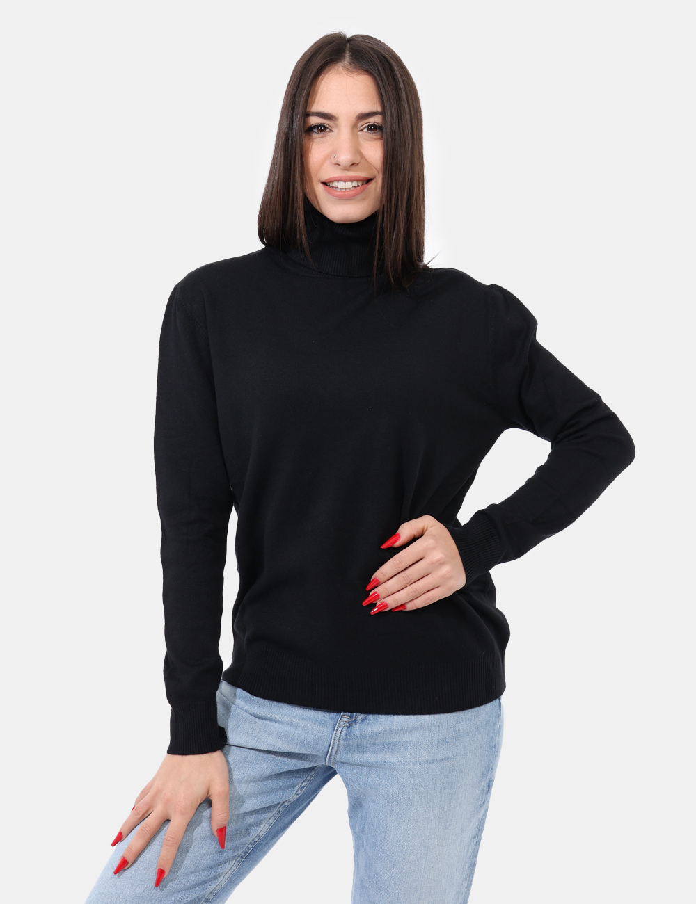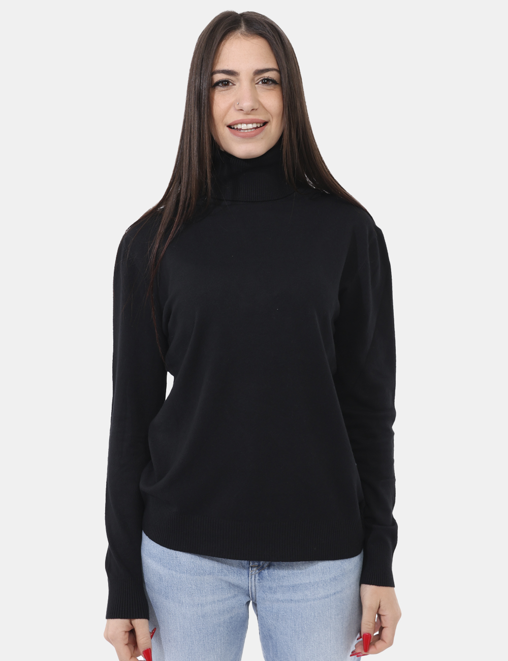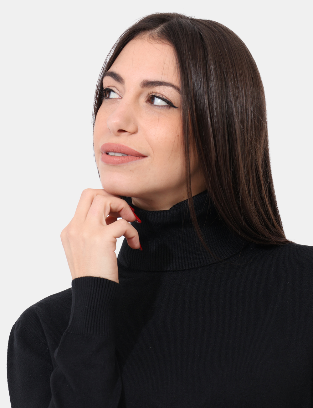 Maglione in misto lana in total nero con collo alto. La vestibilità è morbida e regolare. Il capo è adatto per occasioni casual e facilmente combinabile. Troppo comodo per poterne fare a meno.