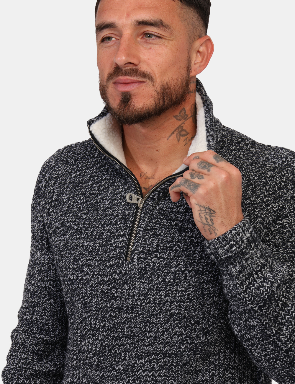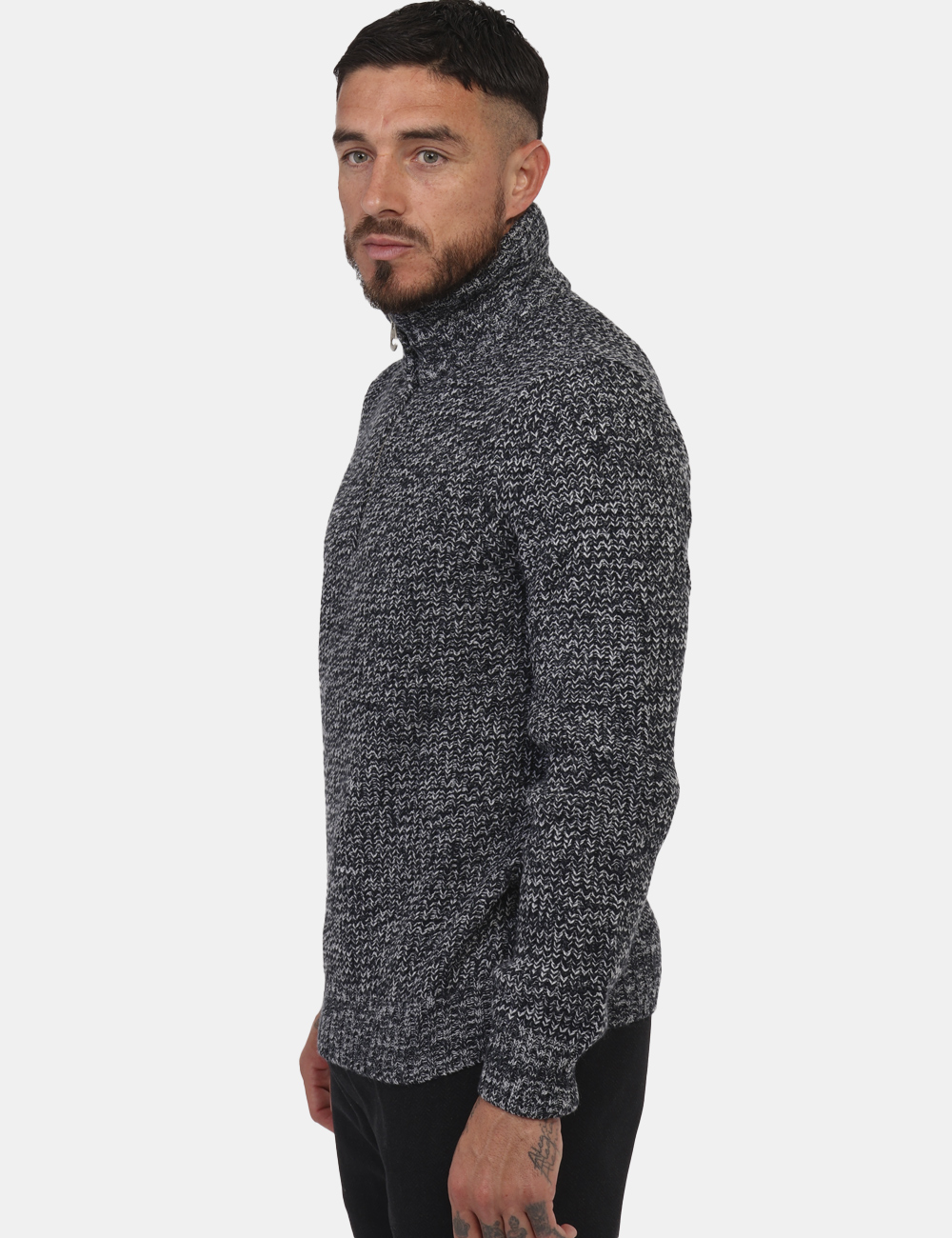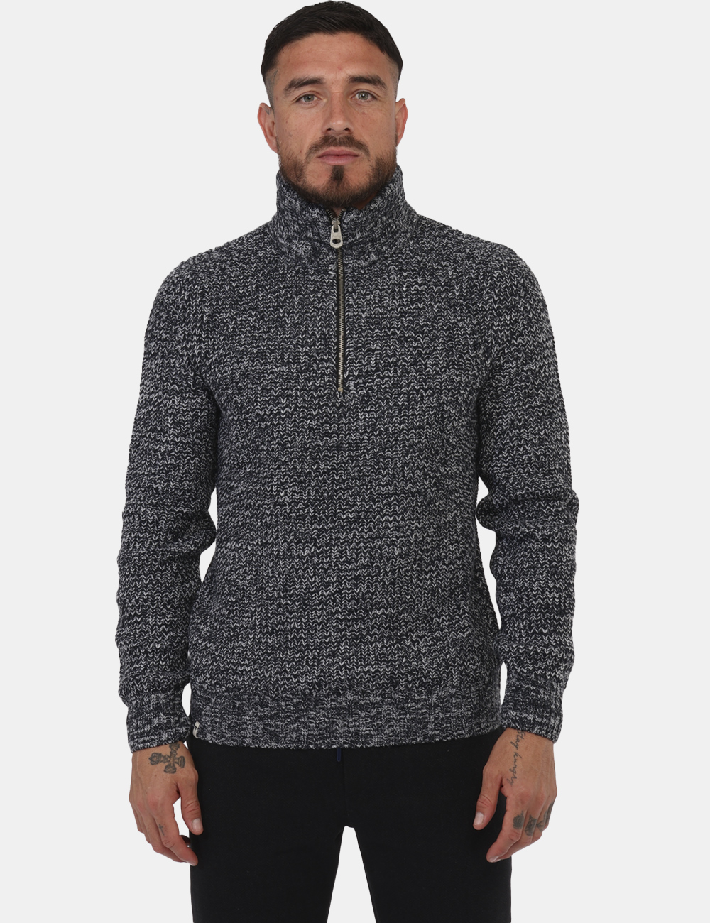 Maglione a collo alto in misto lana in fantasia bianca e blu. La vestibilità è morbida e pratica grazie a zip ad altezza girocollo. Il maglione è adatto per occasioni casual e facilmente combinabile. Aggiungilo al tuo guardaroba per sapere sempre cosa mettere.