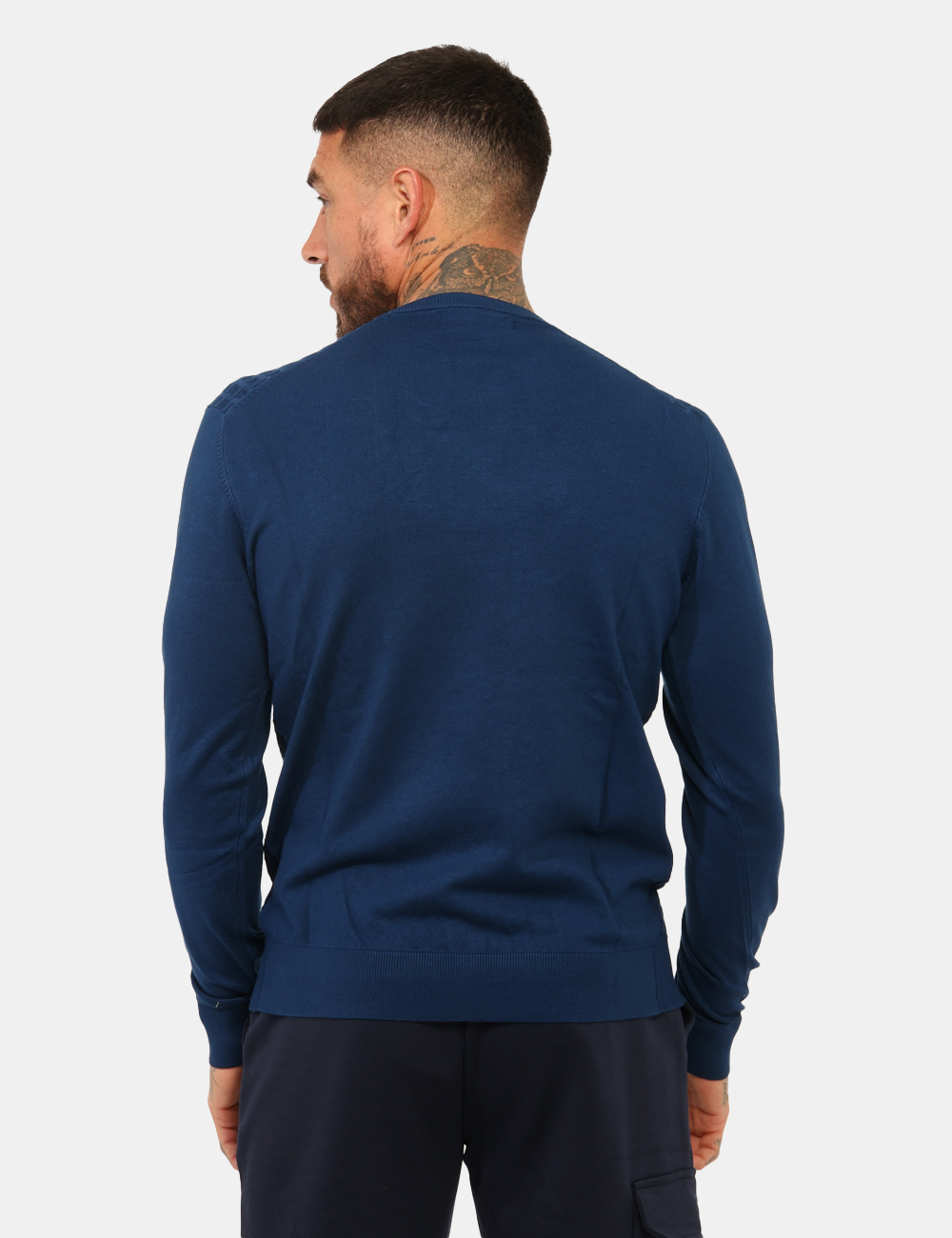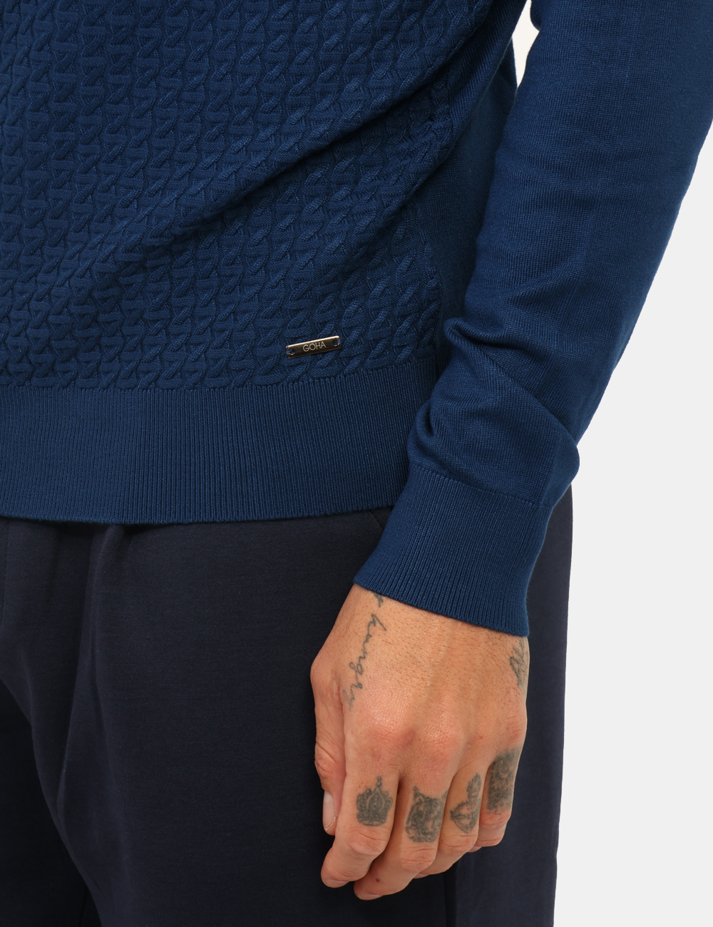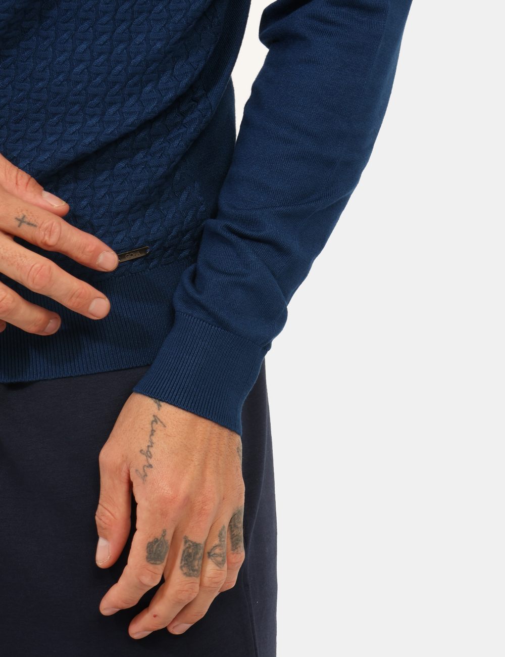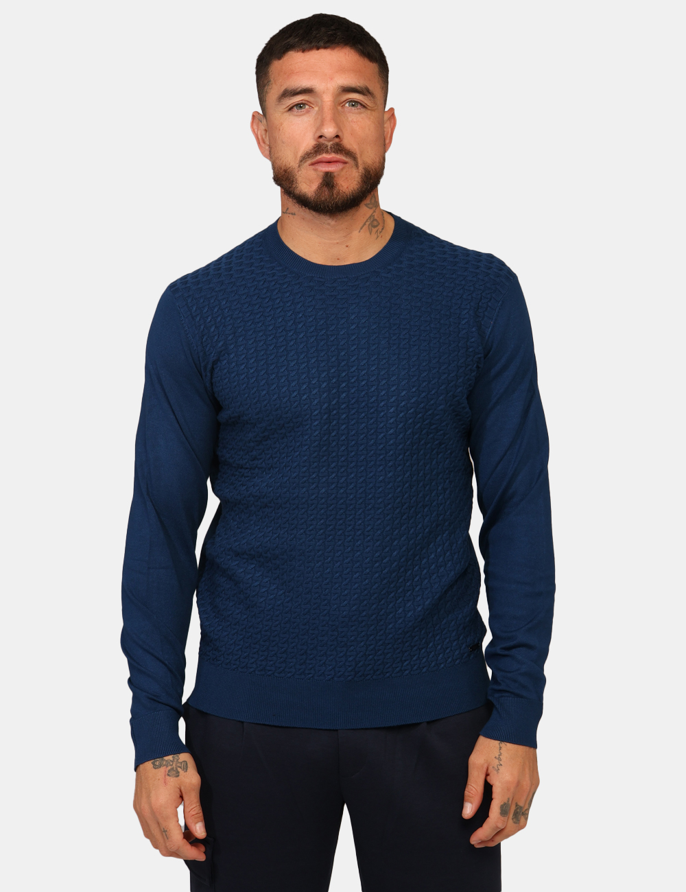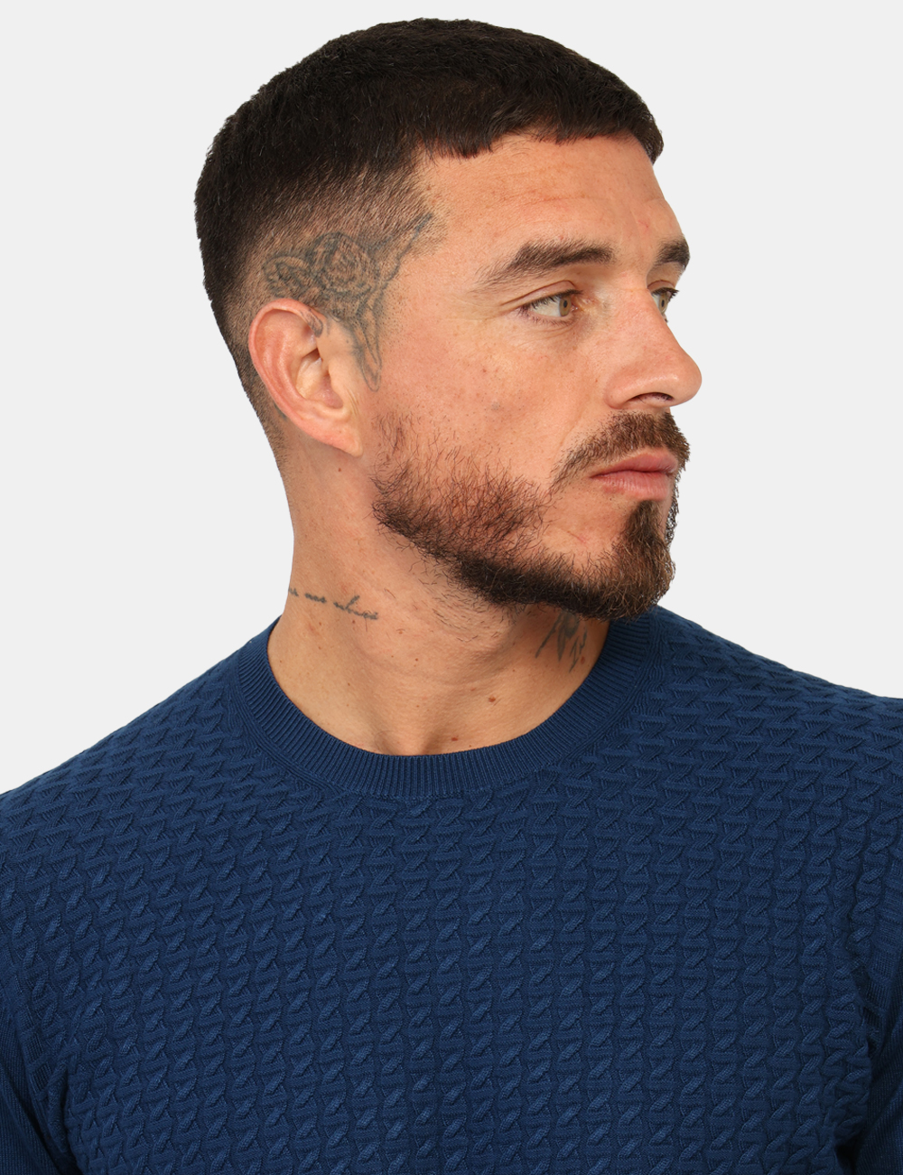 Maglione classico in total blu con girocollo regolare e trama intrecciata. La vestibilità è morbida e pratica. Il maglione è adatto per occasioni casual e facilmente combinabile. Dona un tocco di stile ai tuoi outfit.