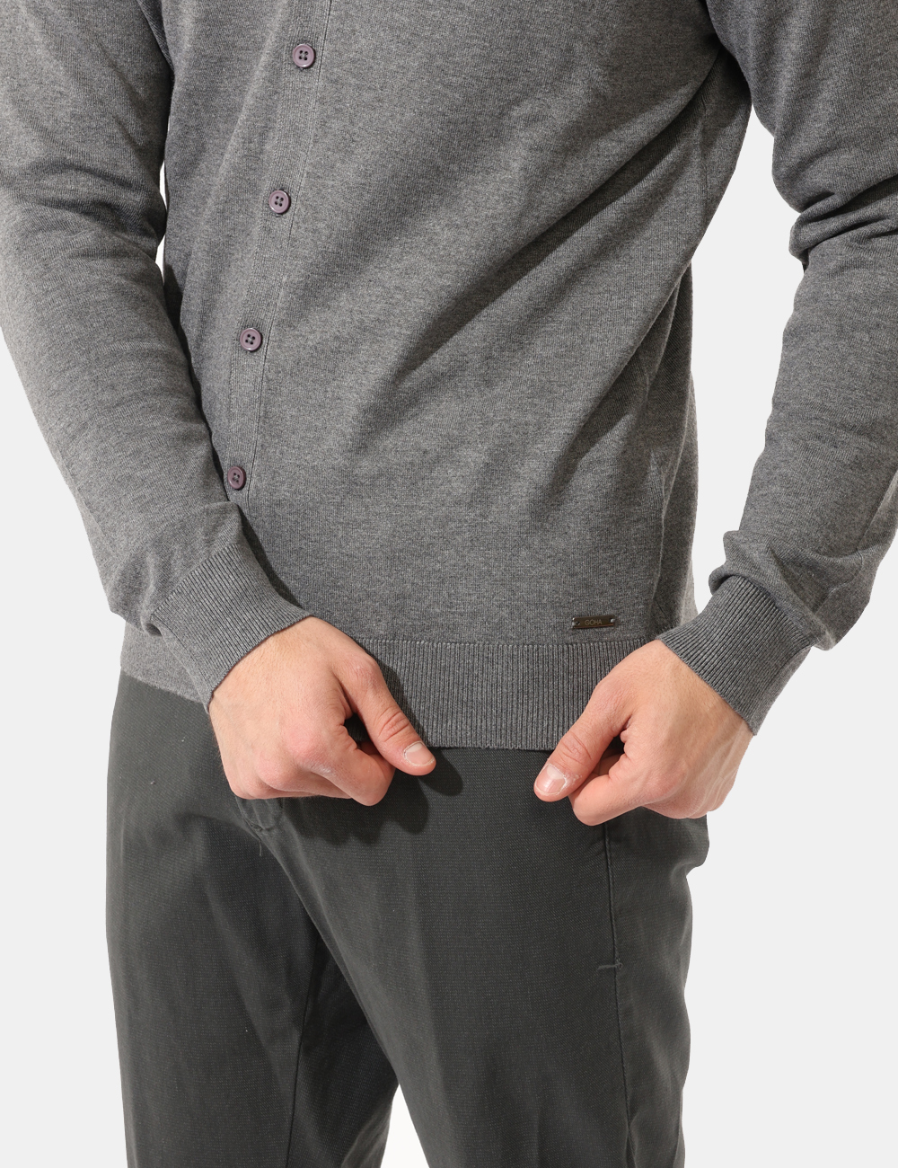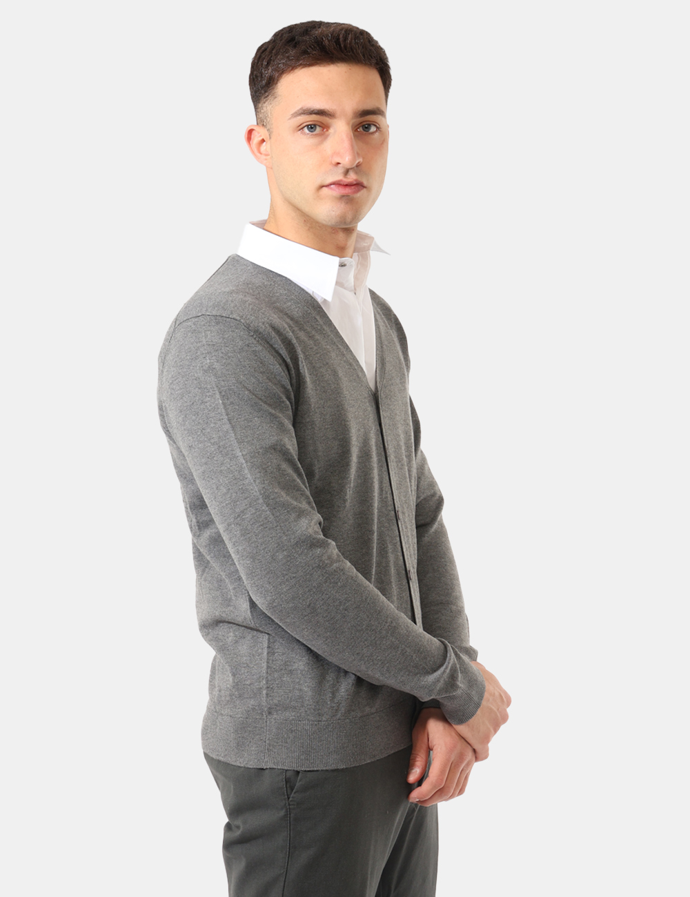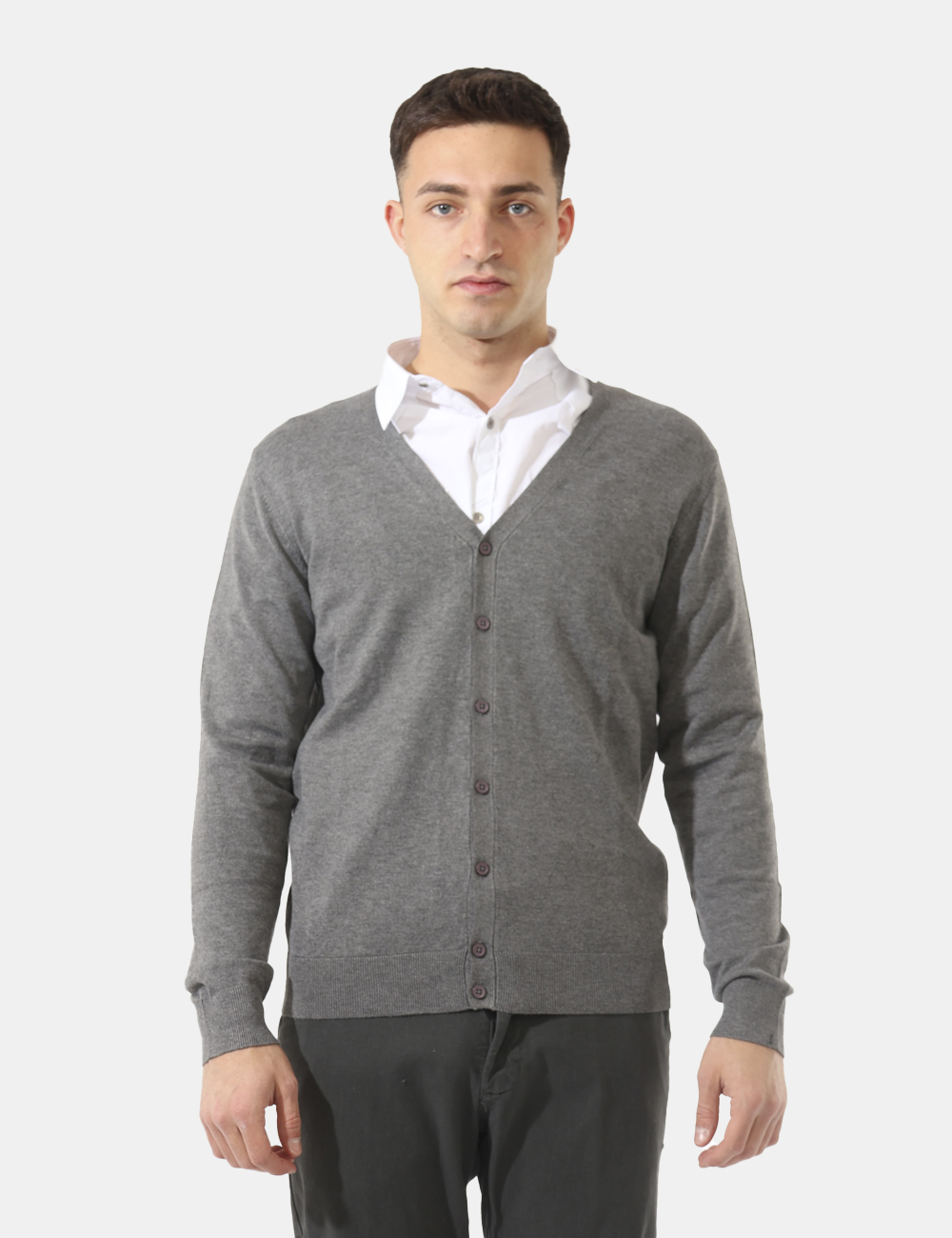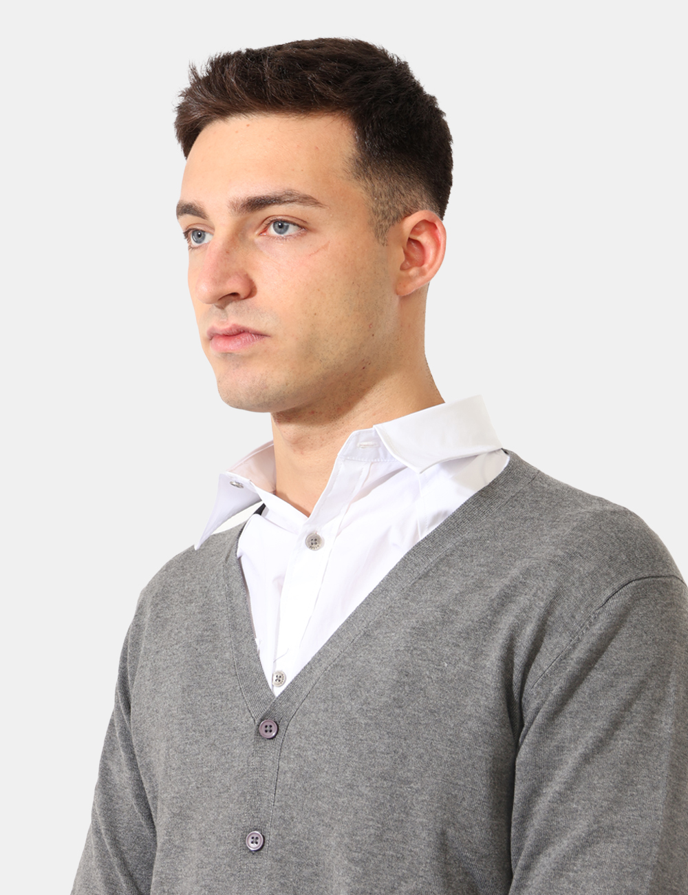 Magllione modello cardigan in total grigio. La vestibilità è morbida e pratica grazie a bottoni ad asola in tinta. Il cardigan è adatto per occasioni casual/raffinate e facilmente combinabile. Aggiungilo al tuo guardaroba e saprai sempre cosa indossare.