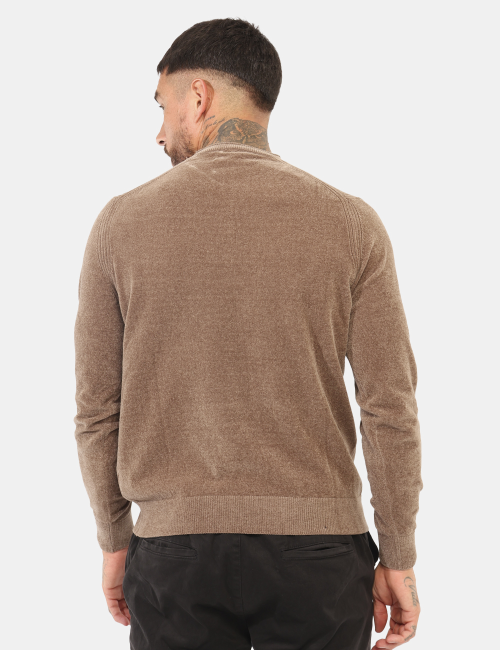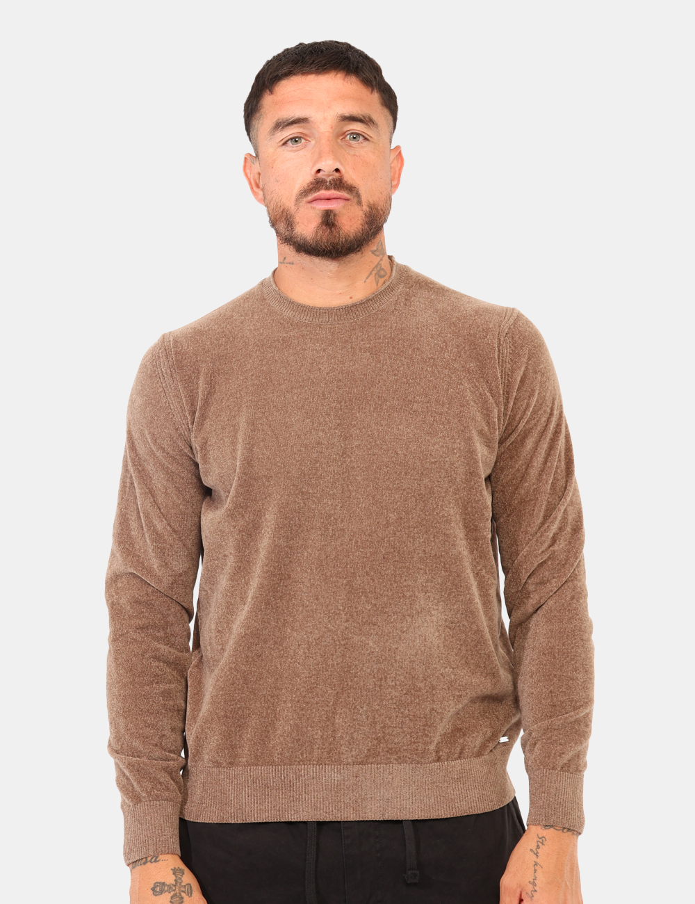 Maglione in total marrone tortora, con girocollo classico ed effetto soffice. La vestibilità è morbida e regolare. Il maglione è adatto per occasioni casual e facilmente combinabile. Praticità e stile in un solo capo.