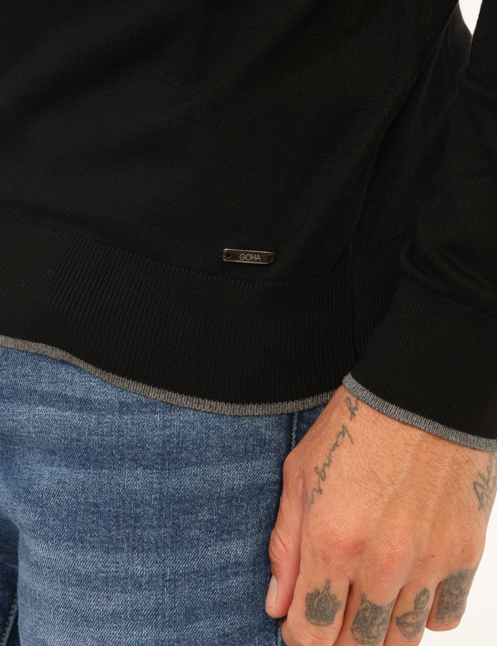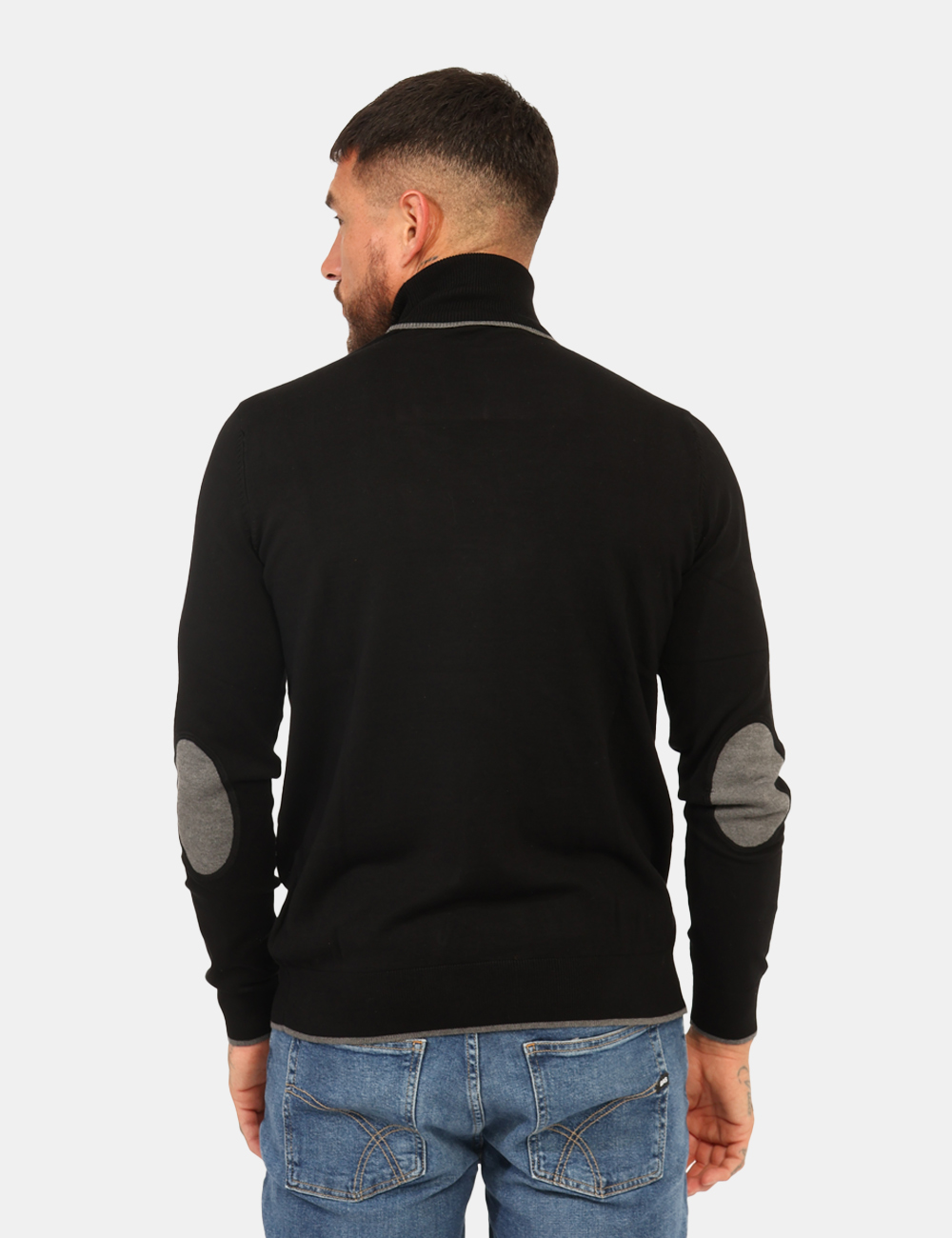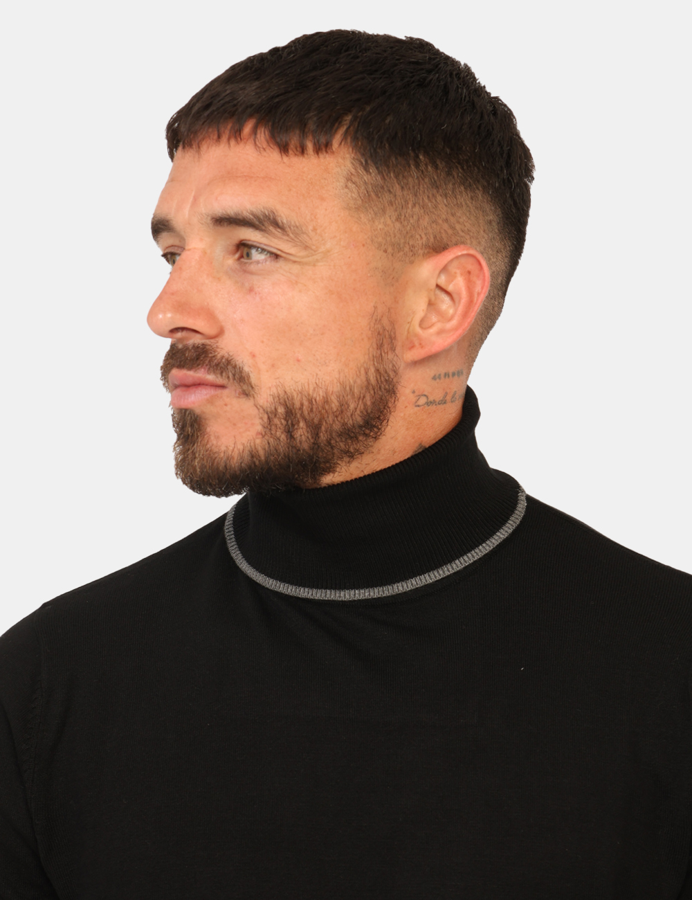 Maglione dolcevita total nero con profili grigi. La vestibilità è morbida e regplare. Il maglione è adatto per occasioni casual e facilmente combinabile. Dona un tocco di stile ai tuoi outfit.