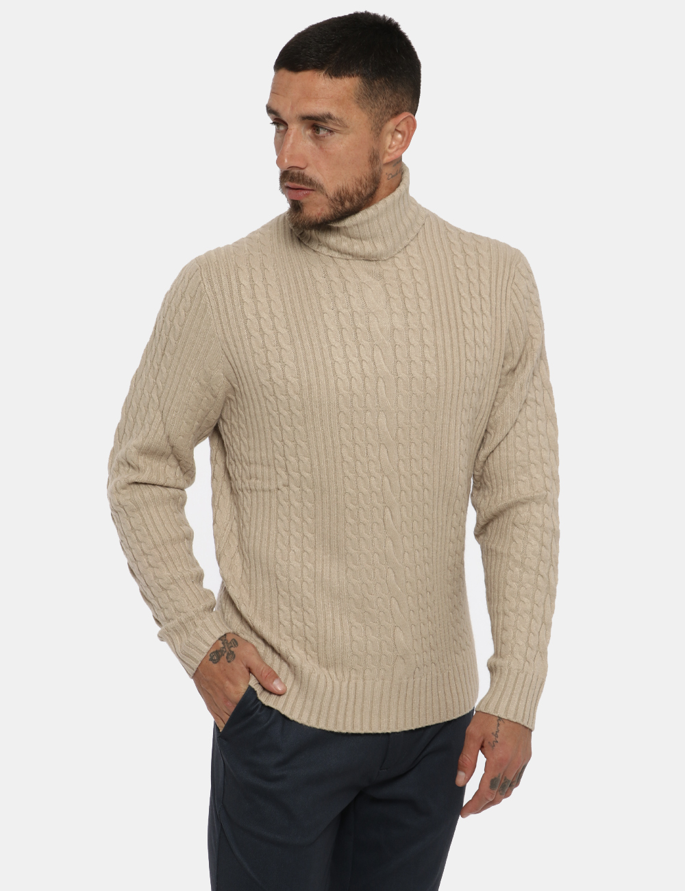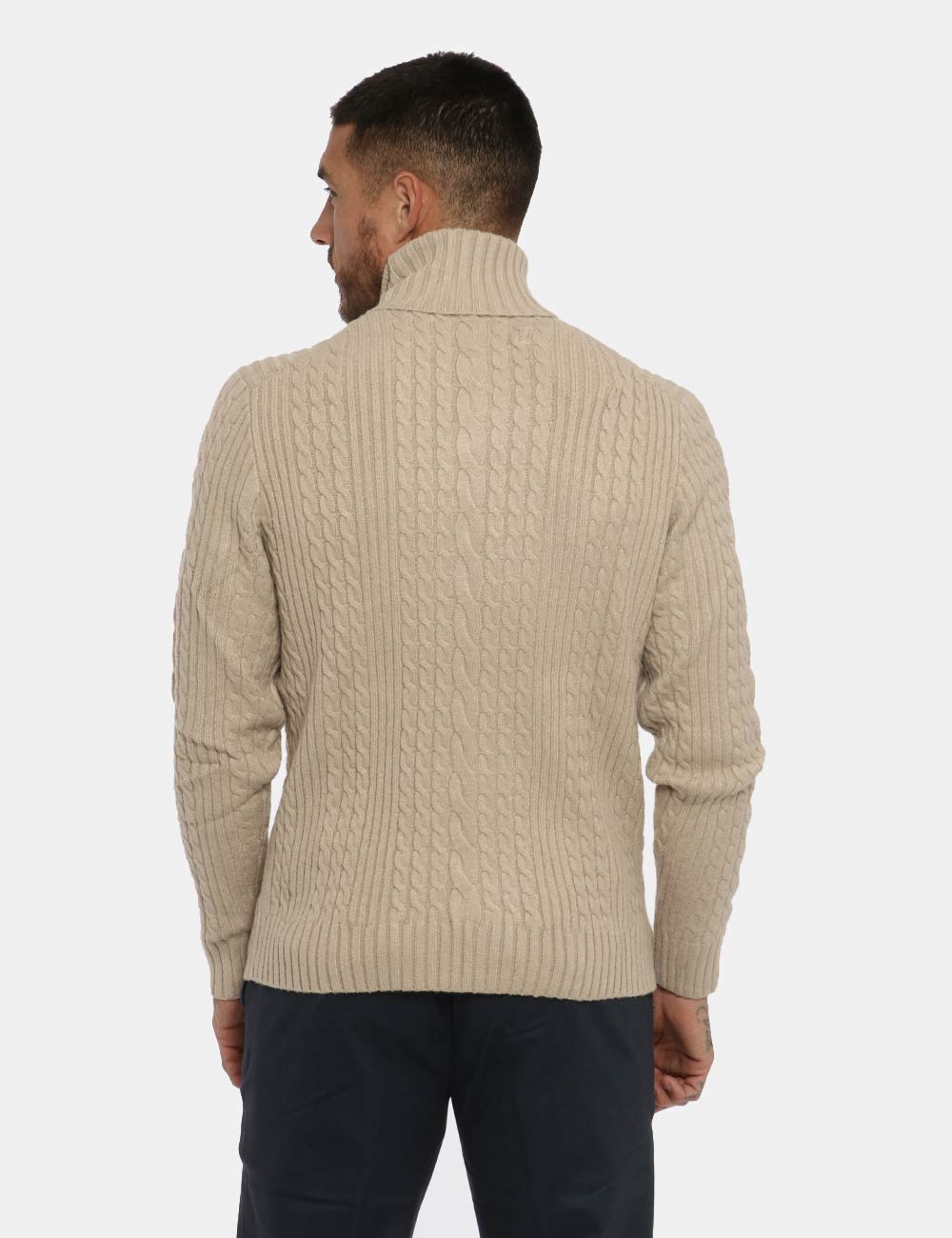 Maglione dolcevita misto cachemire in total beige con trama intrecciata. La vestibilità è morbida e regolare. Il dolcevita è adatto per l’inverno e ideale per occasioni casual. Indossalo per essere impeccabile.