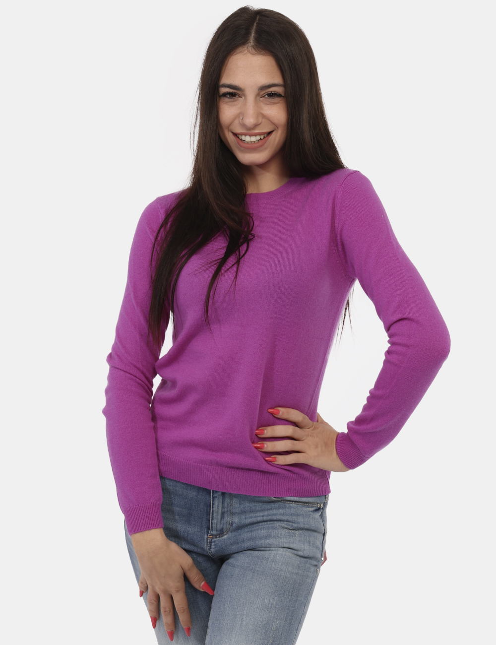 Maglione girocollo classico in cachemire ed in total fucsia. La vestibilità è morbida e regolare. Il maglione è adatto per occasioni casual e facilmente combinabile. Dona un tocco di stile ai tuoi outfit.