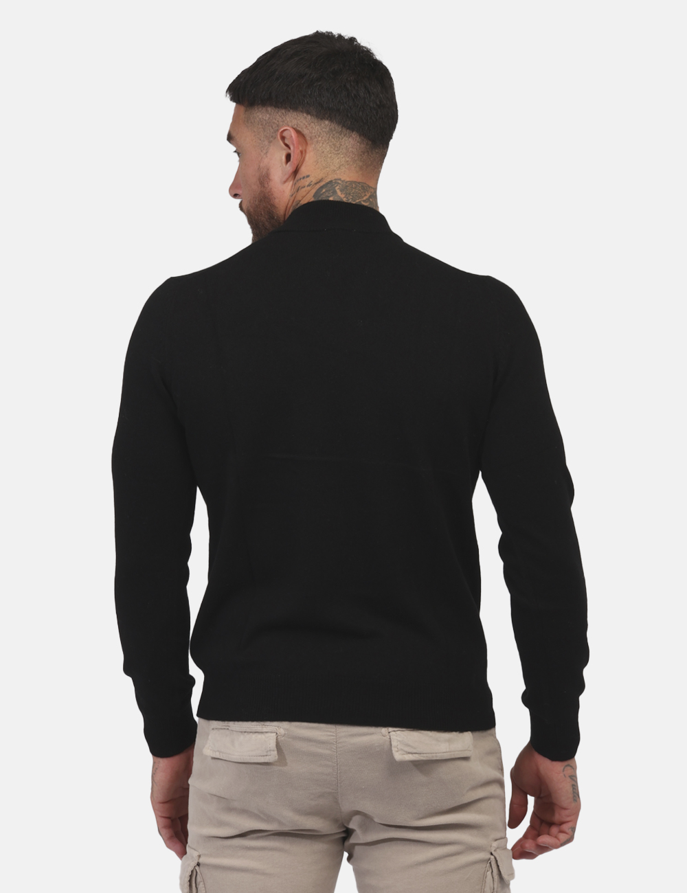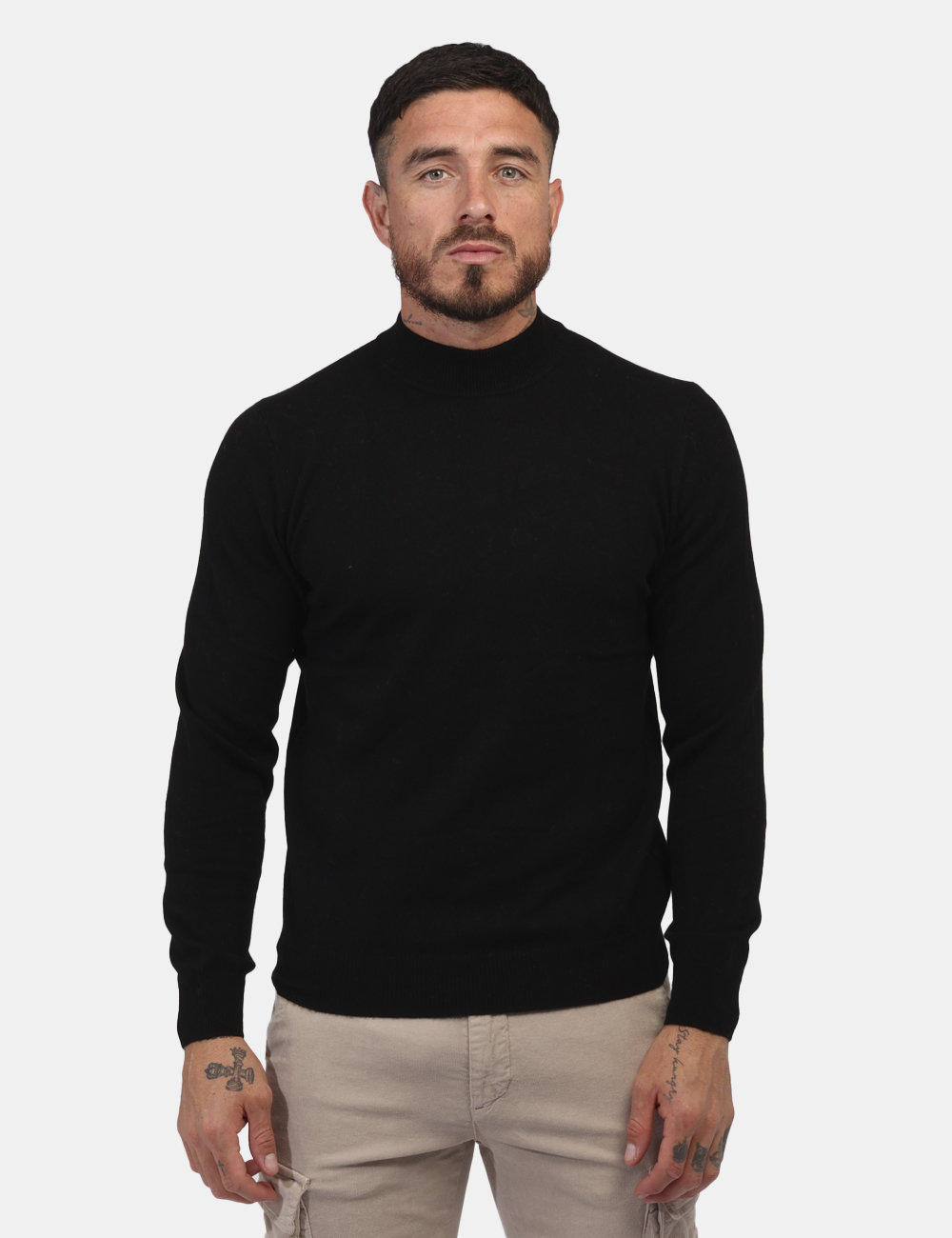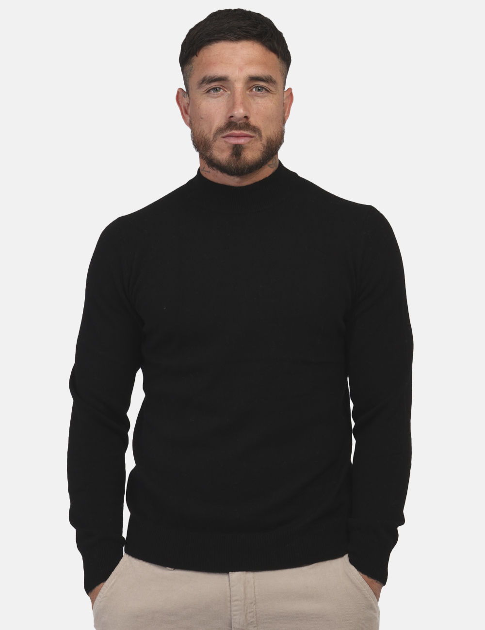 Maglione accollato classico in cachemire ed in total nero. La vestibilità è morbida e regolare. Il capo è adatto per occasioni casual/raffinate. Indossalo per essere impeccabile.