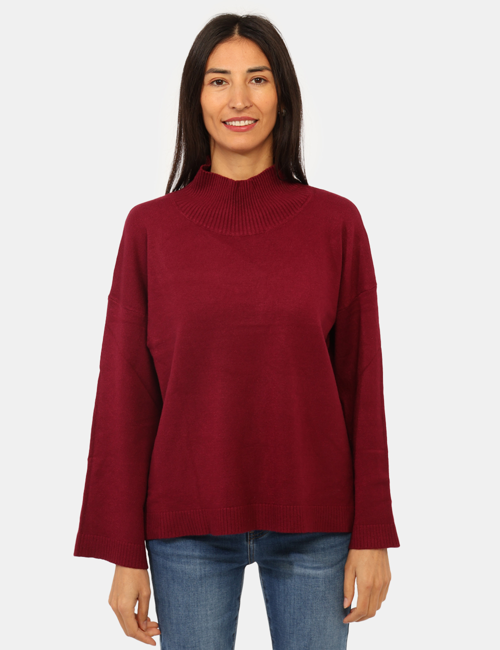 Maglione corto in total bordeaux, con collo alto. La vestibilità è morbida e regolare. Il maglione è adatto per occasioni casual e facilmente combinabile. Il tuo prossimo articolo nei prodotti salvati.