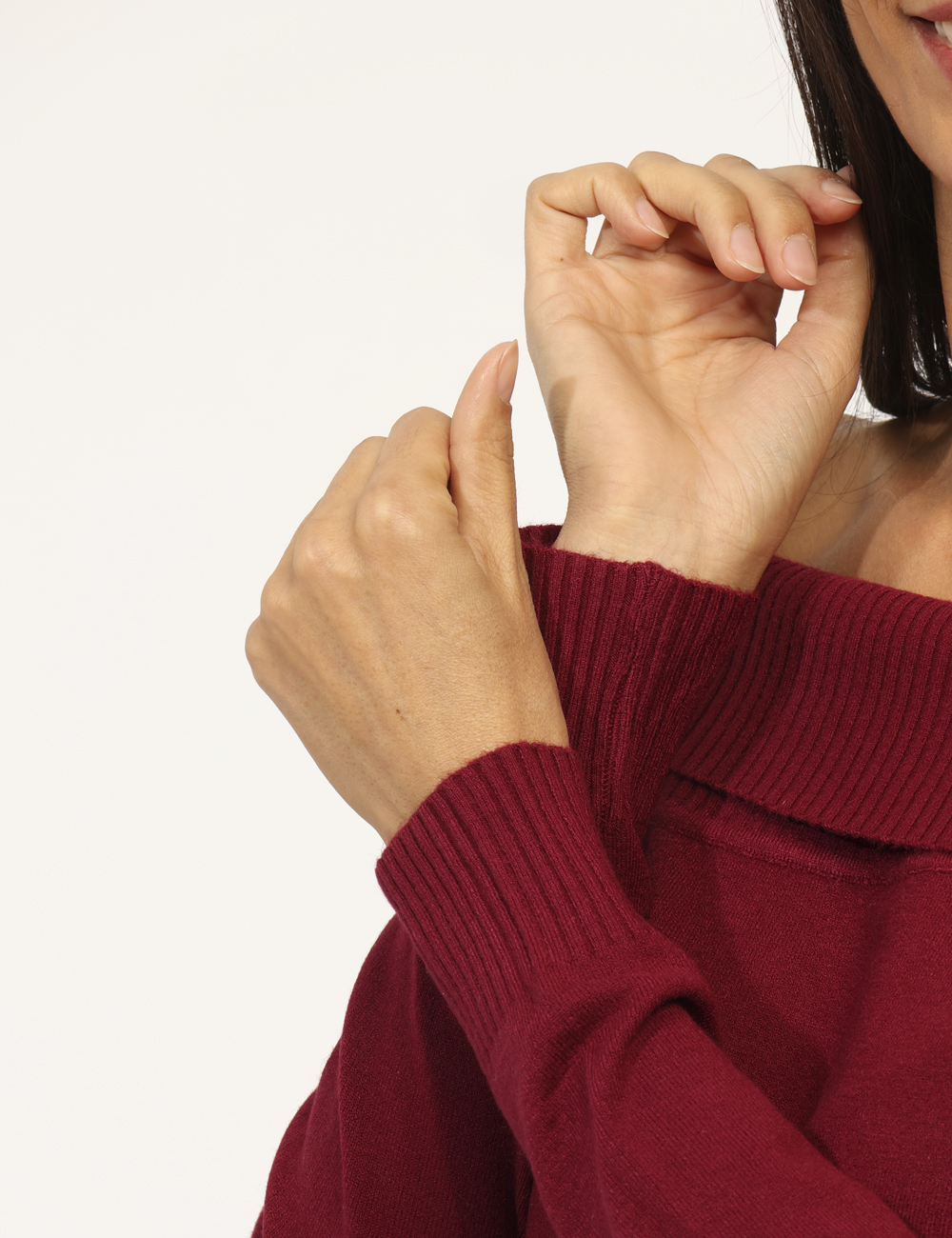 Maglione corto in total bordeaux, con scollo morbido e ampio. La vestibilità è morbida e regolare. Il maglione è adatto per occasioni casual e facilmente combinabile. Il tuo prossimo articolo nei prodotti salvati.