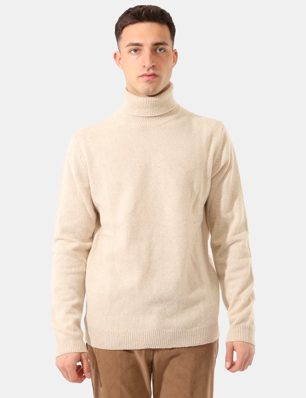 Maglione modello dolcevita, in total beige chiaro e misto lana. La vestibilità è morbida e regolare. Il maglione è adatto per occasioni casual e facilmente combinabile. Dona un tocco di stile ai tuoi outfit.