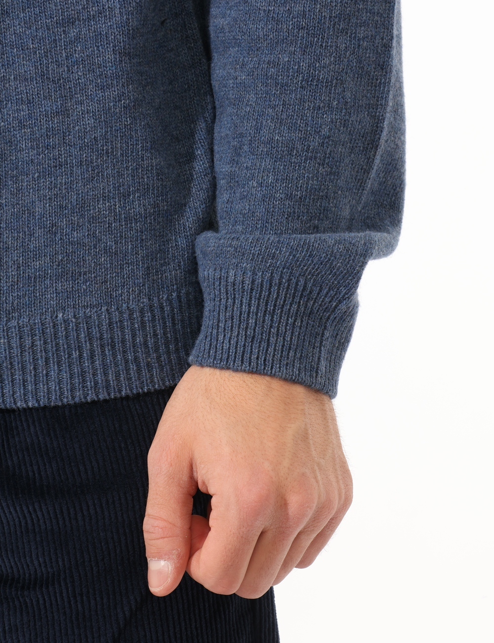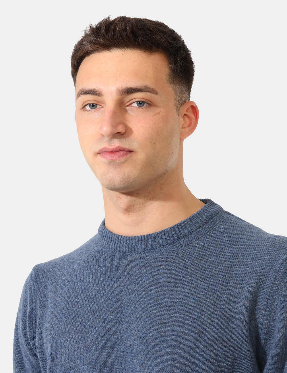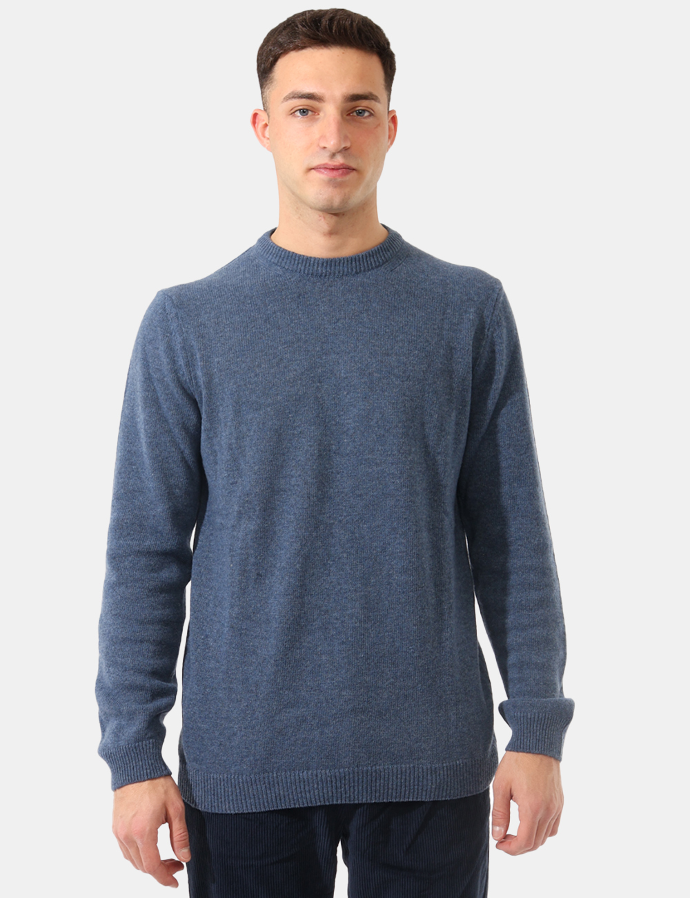 Maglione con girocollo classico, in total blu denim e misto lana. La vestibilità è morbida e regolare. Il maglione è adatto per occasioni casual e facilmente combinabile. Aggiungilo al tuo guardaroba e saprai sempre cosa indossare.