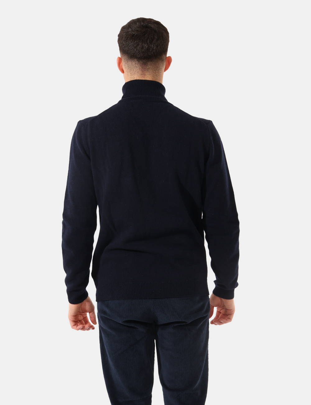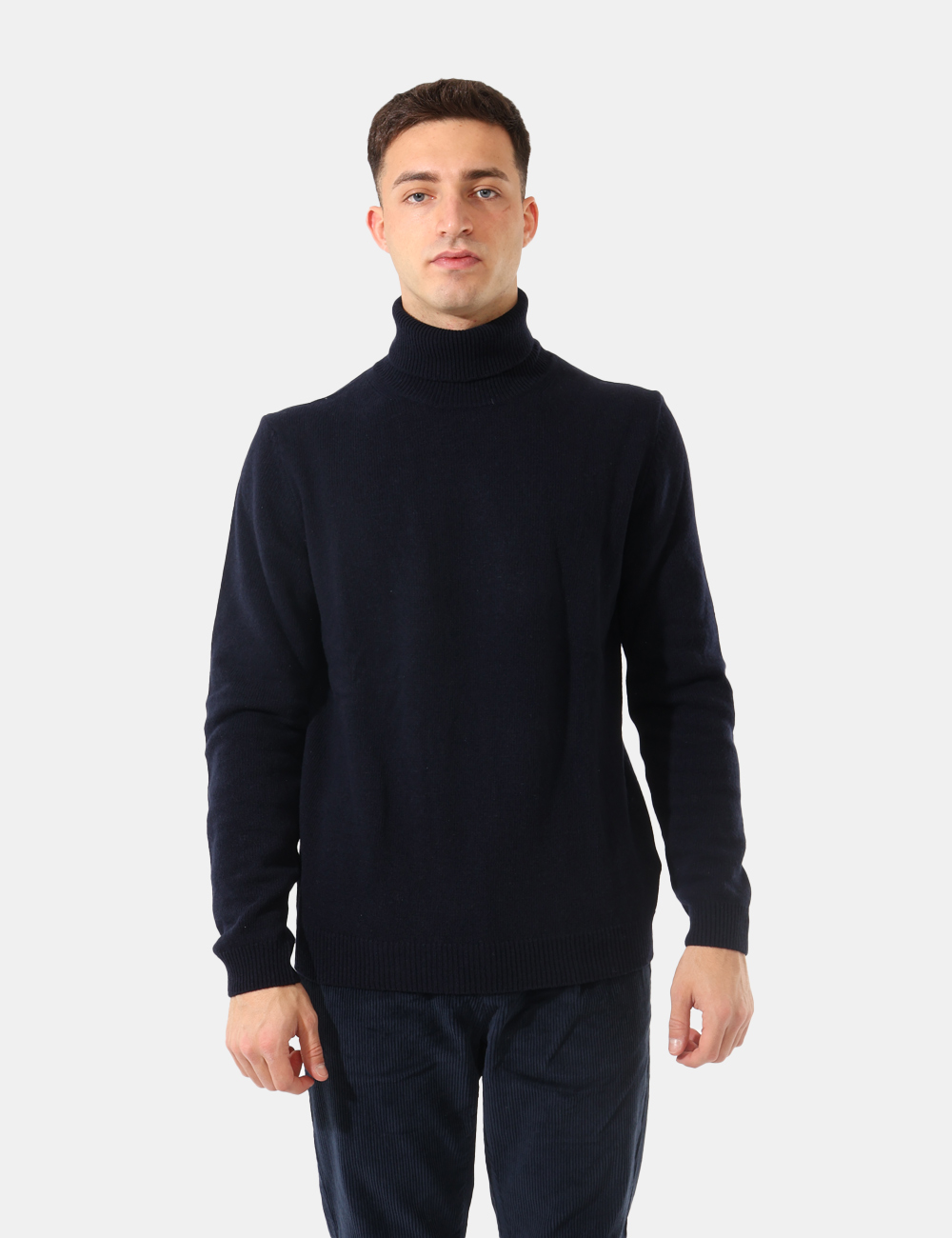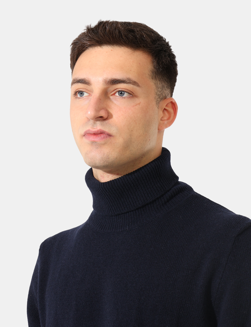 Maglione modello dolcevita, in total blu navy e misto lana. La vestibilità è morbida e regolare. Il maglione è adatto per occasioni casual e facilmente combinabile. Dona un tocco di stile ai tuoi outfit.