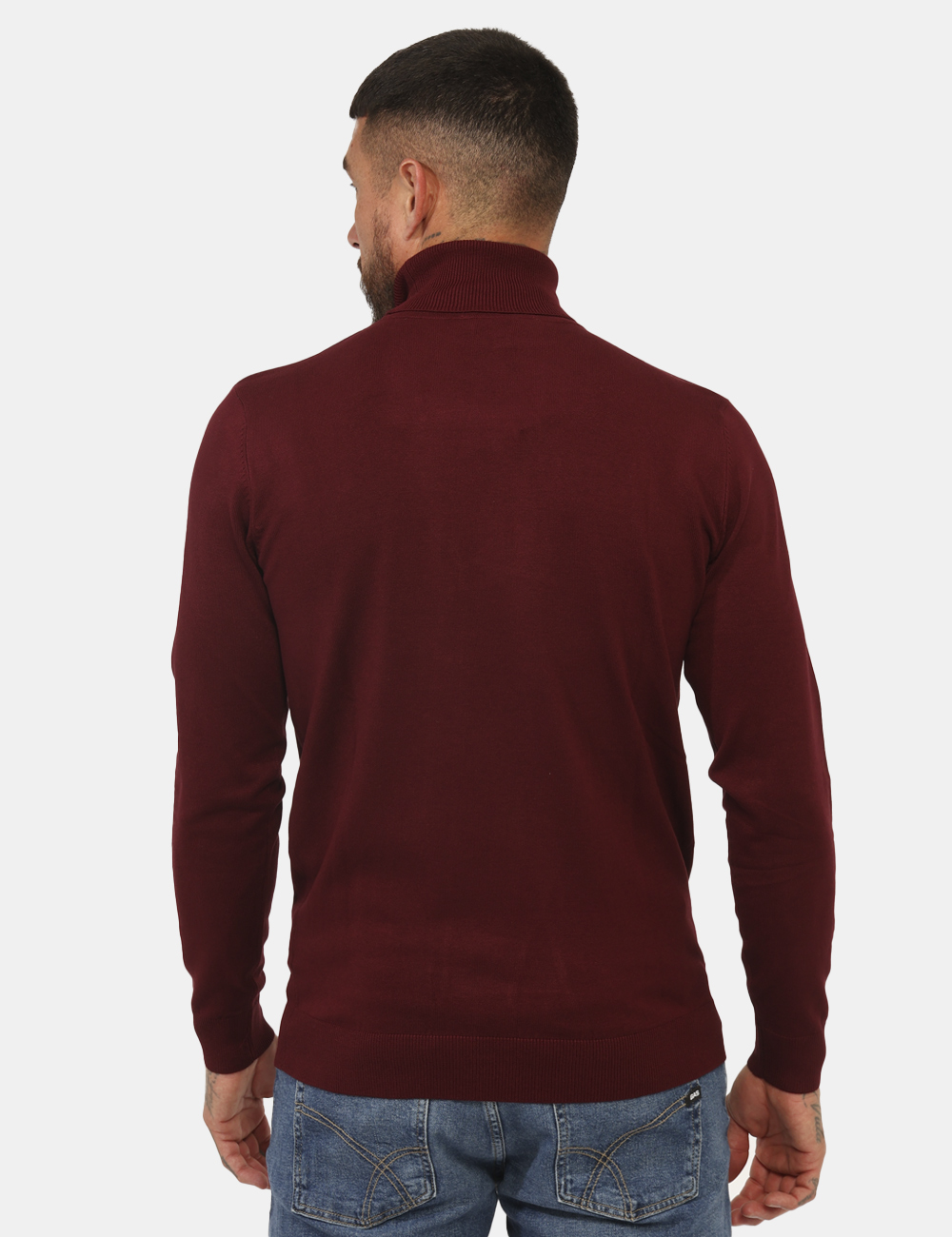 Maglia a collo alta classica, in total rosso vino. La vestibilità è morbida e pratica. La maglia è adatta per occasioni casual e facilmente combinabile. Praticità e stile in un solo capo.