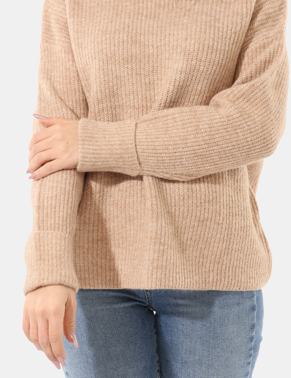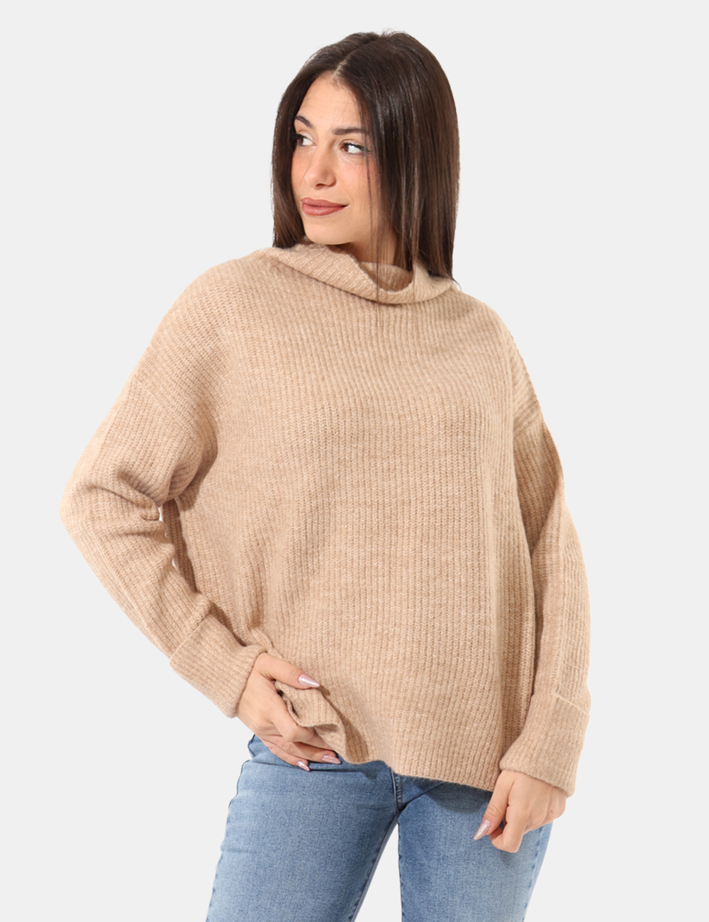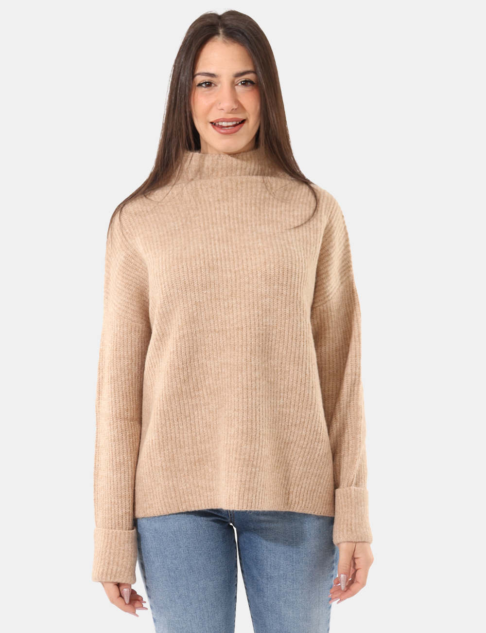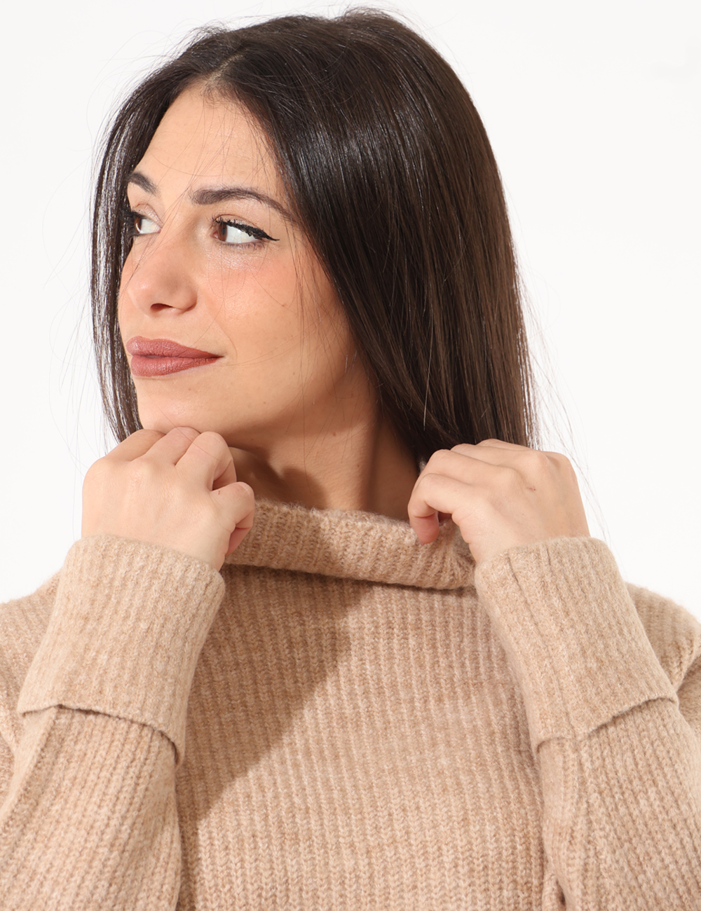Maglione a collo alto, in misto lana, total beige. La vestibilità è morbida e regolare. Il maglione è adatto per occasioni casual e facilmente combinabile. Scalda il tuo inverno con un tocco di stile.