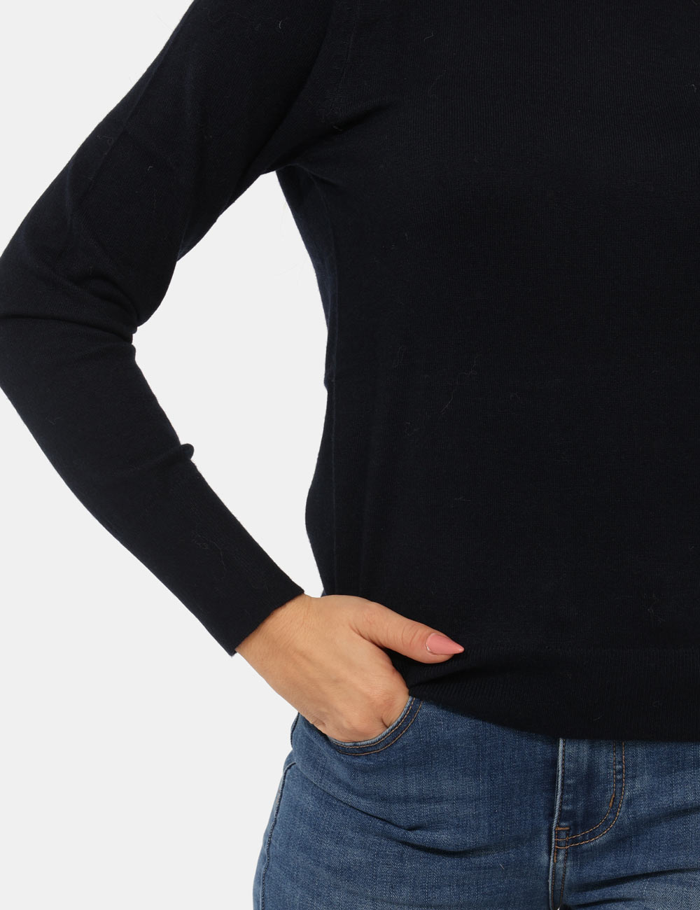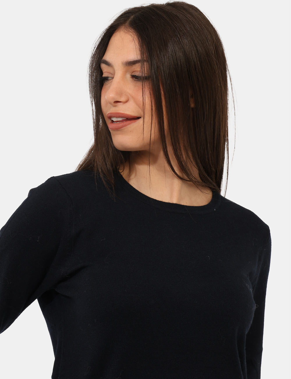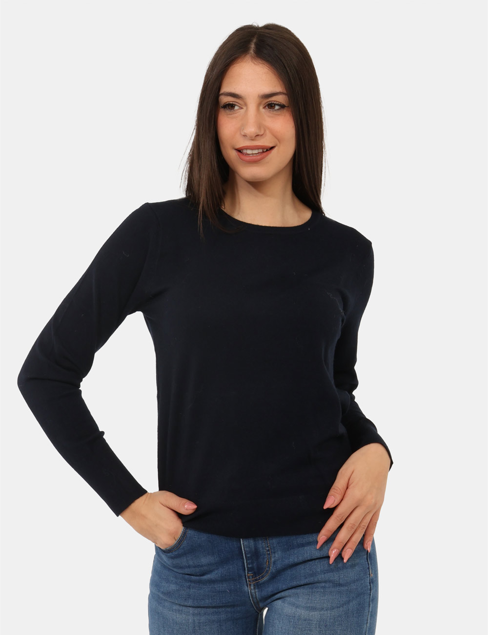 Maglioncino leggero, con girocollo classico e in total blu navy. La vestibilità è morbida e regolare. Il maglione è adatto per occasioni casual, ideale con un jeans. Praticità e stile in un solo capo.