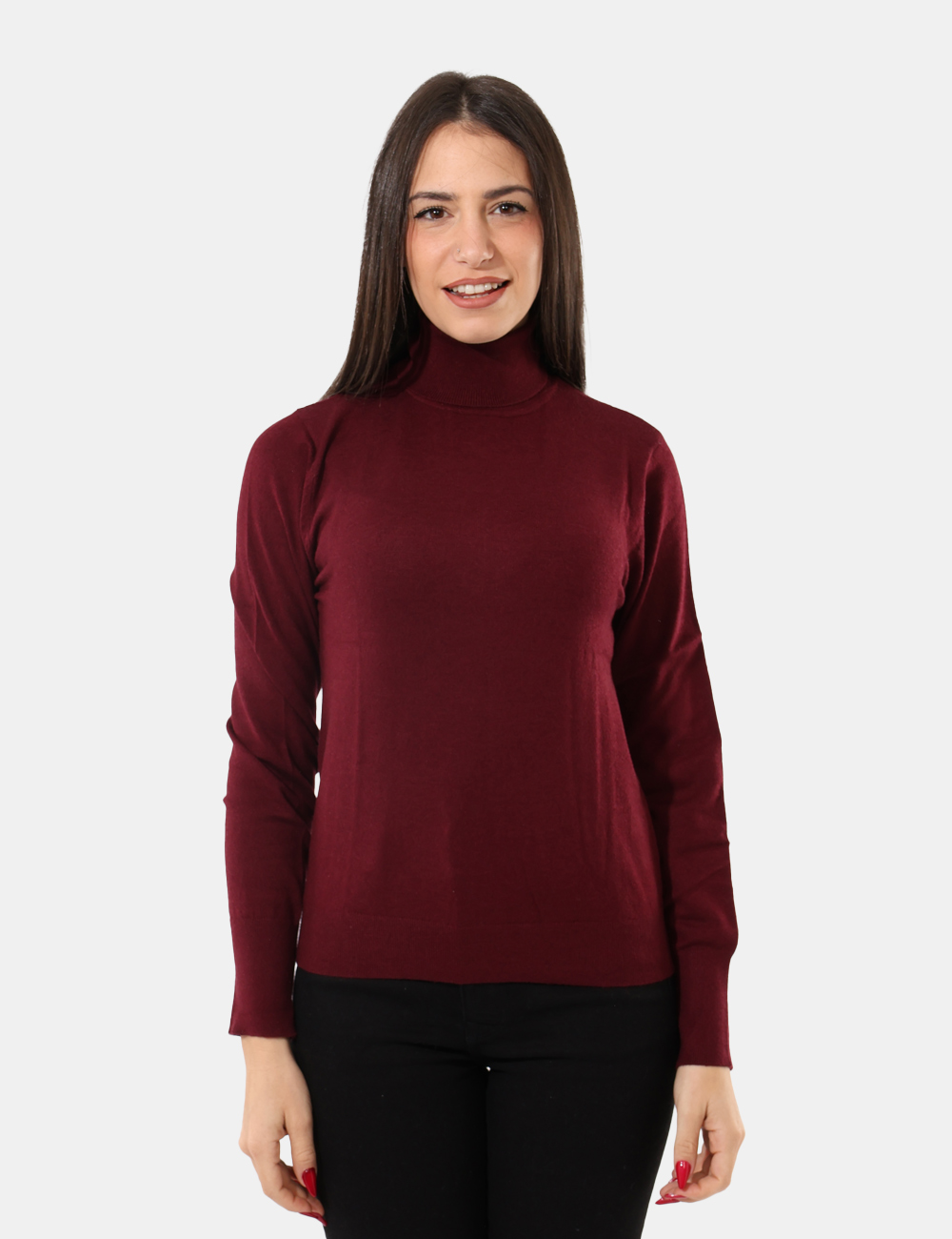 Maglione modello dolcevita in total bordeaux. La vestibilità è morbida e regolare. Il dolcevita è adatto per occasioni casual e facilmente combinabile, ideale con un blazer. Aggiungilo al tuo guardaroba e saprai sempre cosa indossare.