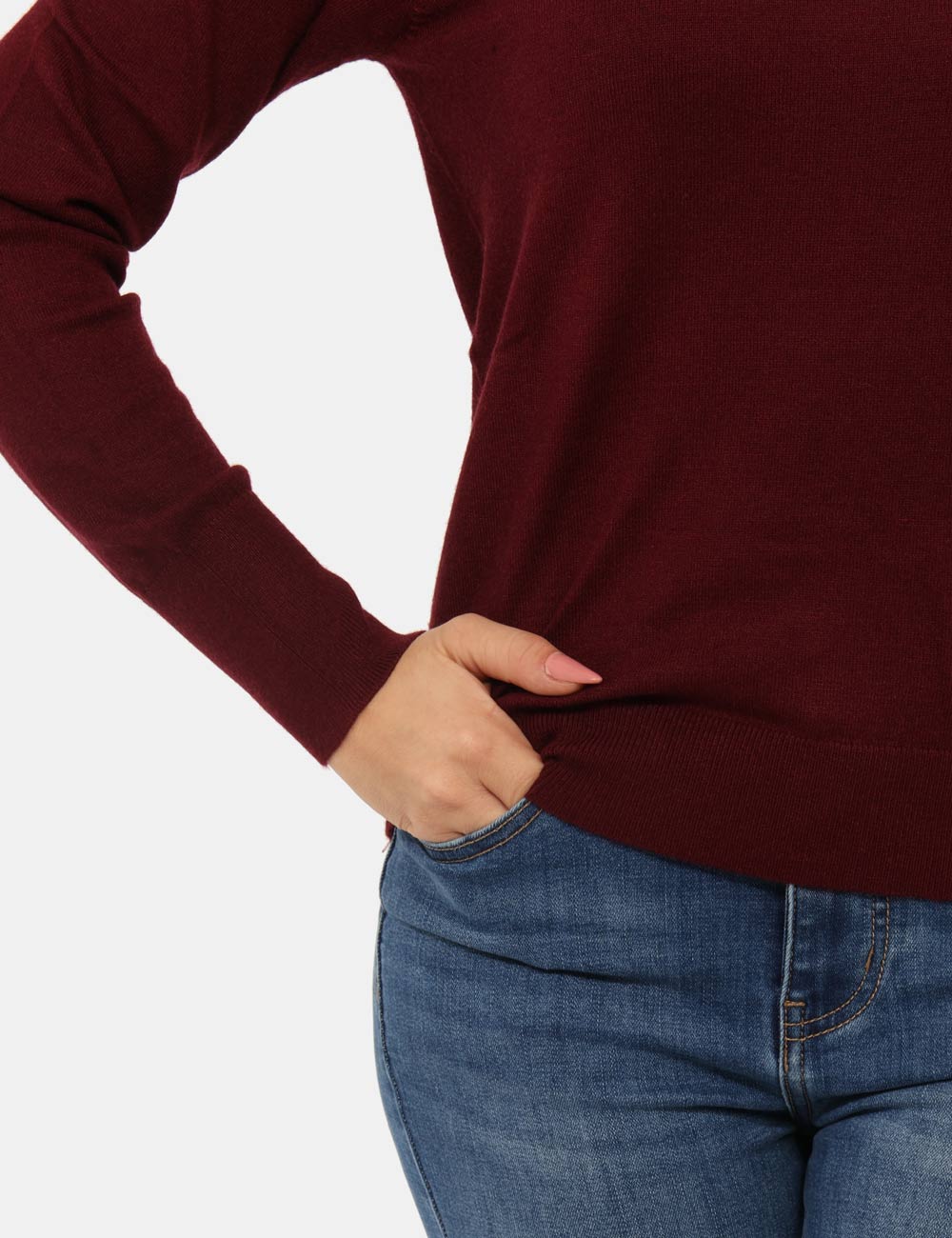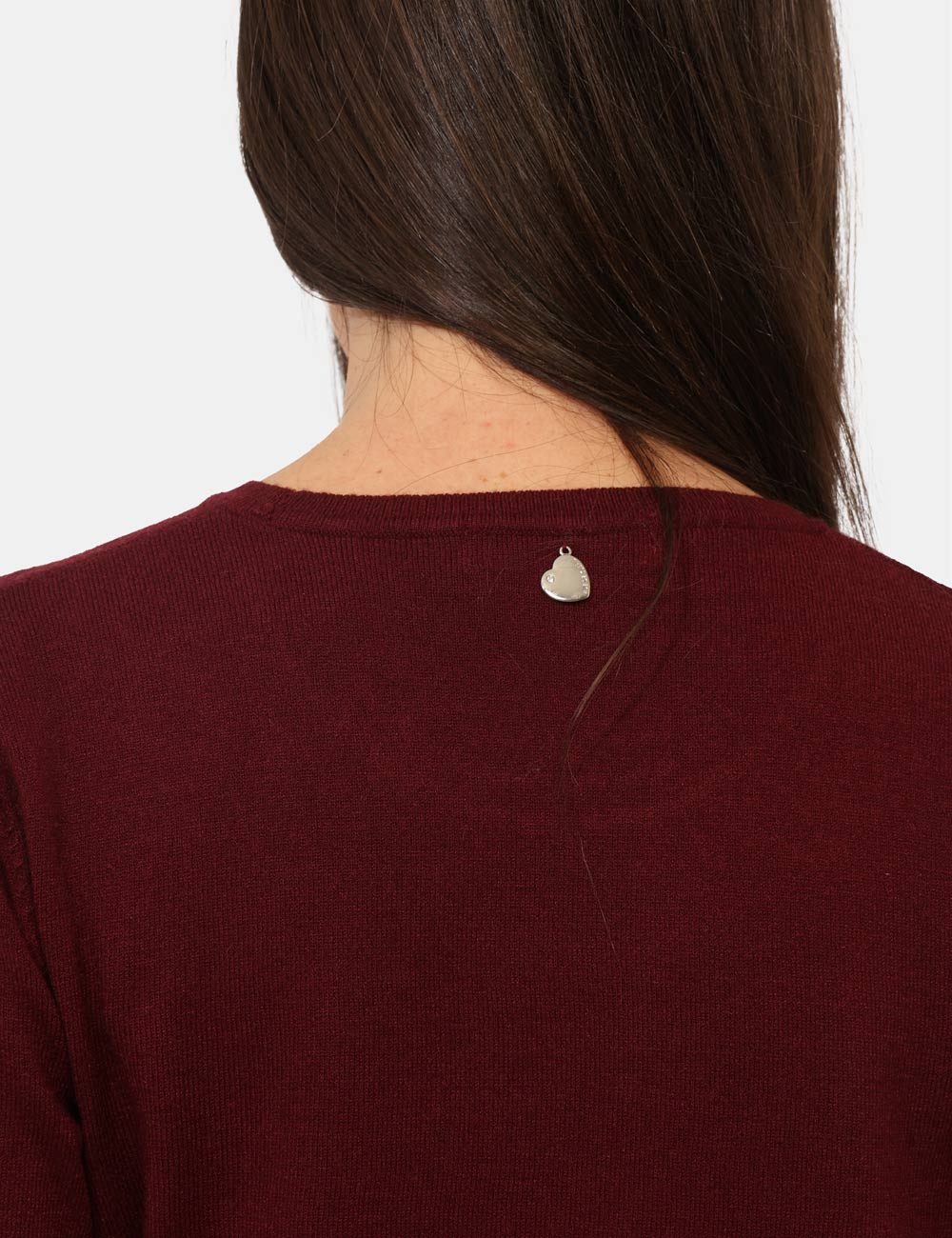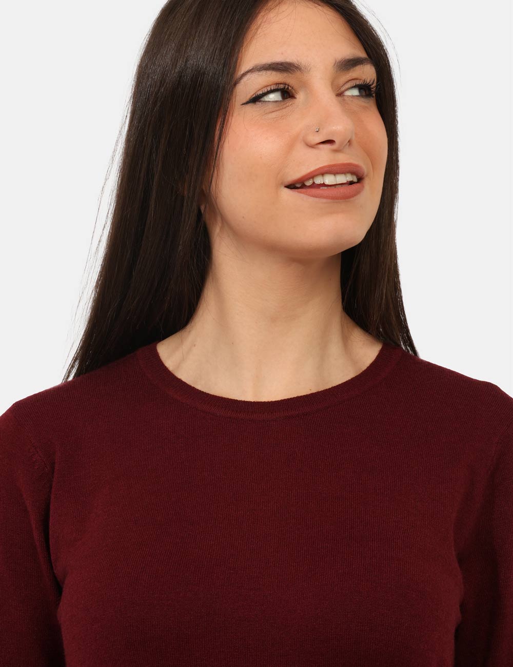 Maglioncino leggero, con girocollo classico e in total bordeaux. La vestibilità è morbida e regolare. Il maglione è adatto per occasioni casual, ideale con un jeans. Praticità e stile in un solo capo.
