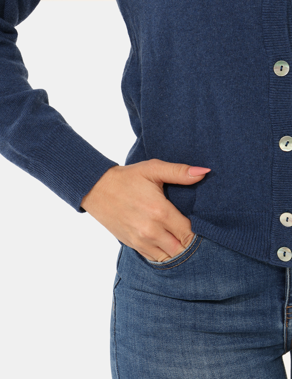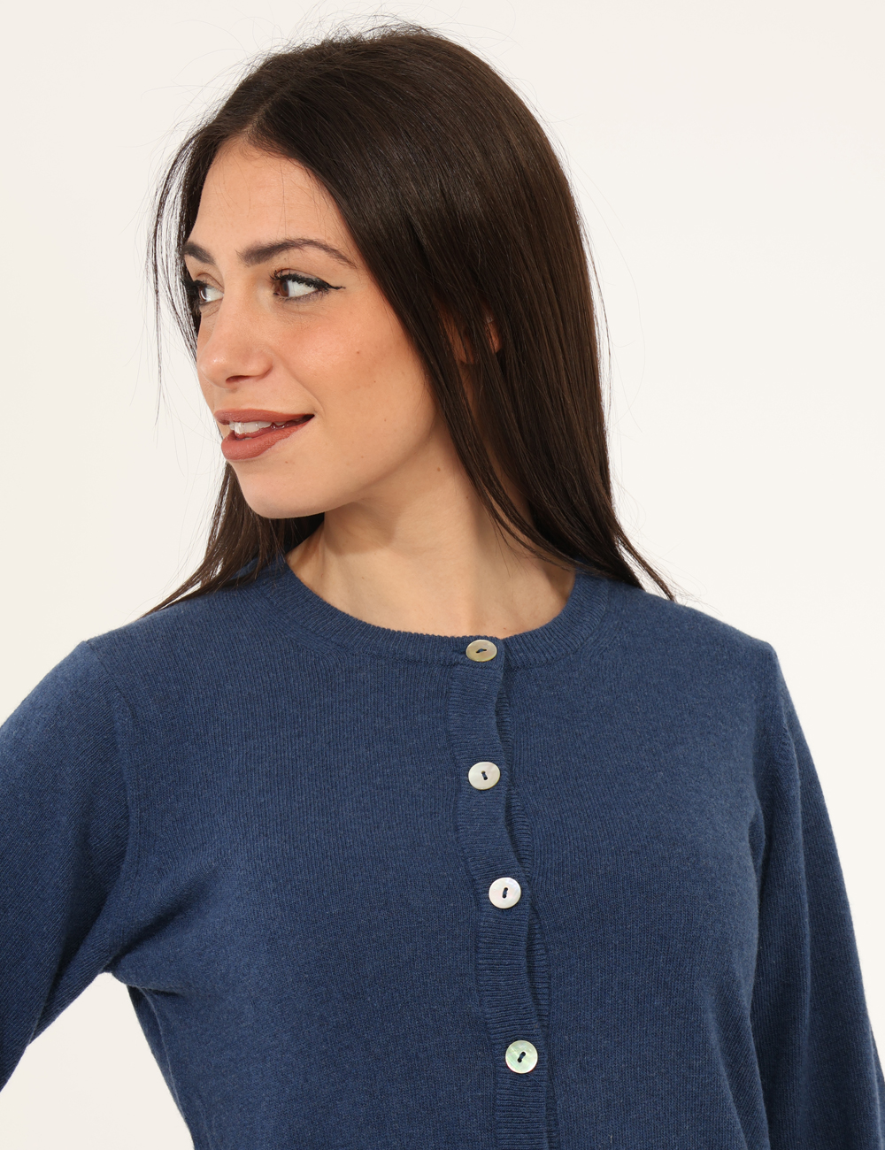 Maglione modello cardigan, in misto lana/cashmere ed in total blu avio. La vestibilità è morbida e pratica grazie a bottoni ad asola in tinta. Il maglione è adatto per occasioni casual e facilmente combinabile. Pratico al punto giusto, impossibile farne a meno.