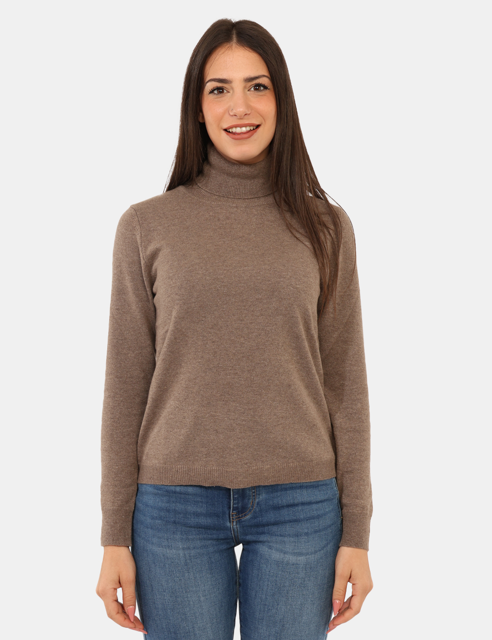 Maglione modello dolcevita, in misto lana e cashmere, total marrone noce. La vestibilità è morbida e regolare. Il maglione è adatto per occasioni casual e facilmente combinabile. Troppo comodo per poterne fare a meno.
