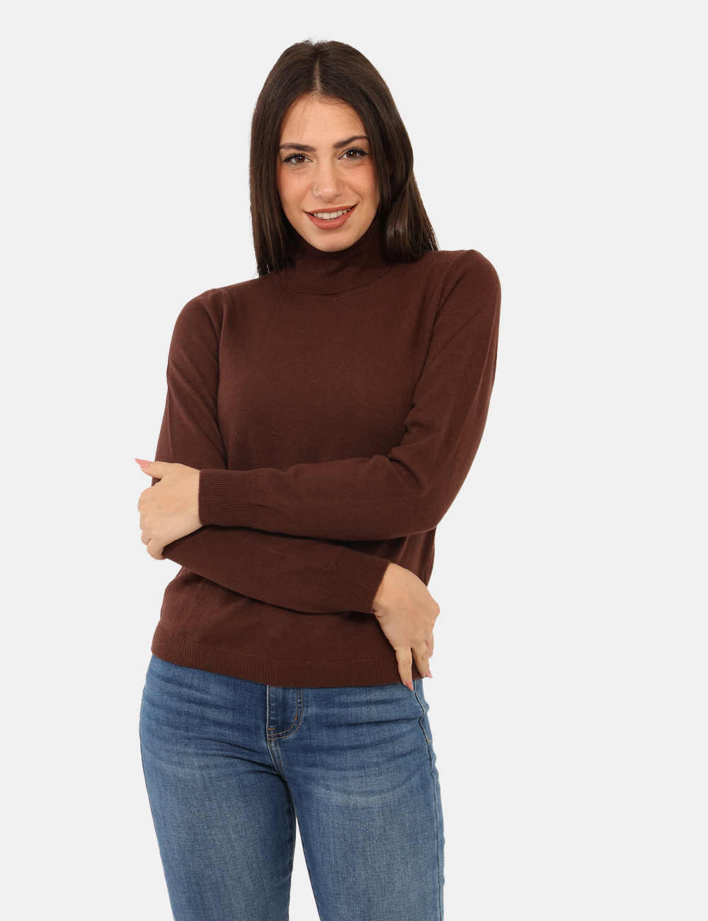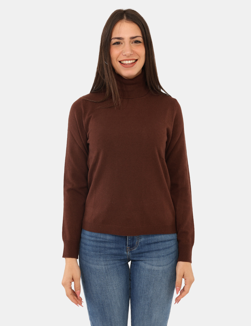 Maglione modello dolcevita, in misto lana e cashmere, total marrone castagna. La vestibilità è morbida e regolare. Il maglione è adatto per occasioni casual e facilmente combinabile. Troppo comodo per poterne fare a meno.