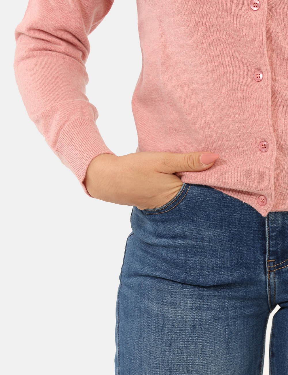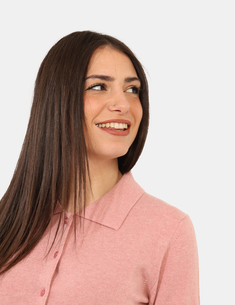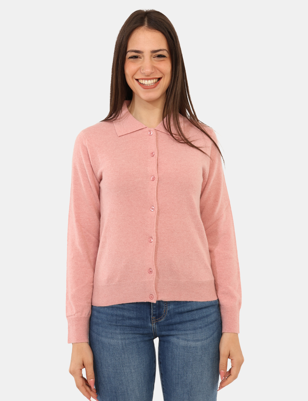 Maglione modello simil cardigan, in total rosa polvere, con colletto alla peter pan. La vestibilità è morbida e pratica grazie a bottoni ad asola in tinta. Il maglione è adatto per occasioni casual e facilmente combinabile. Il tuo prossimo articolo nei prodotti salvati.