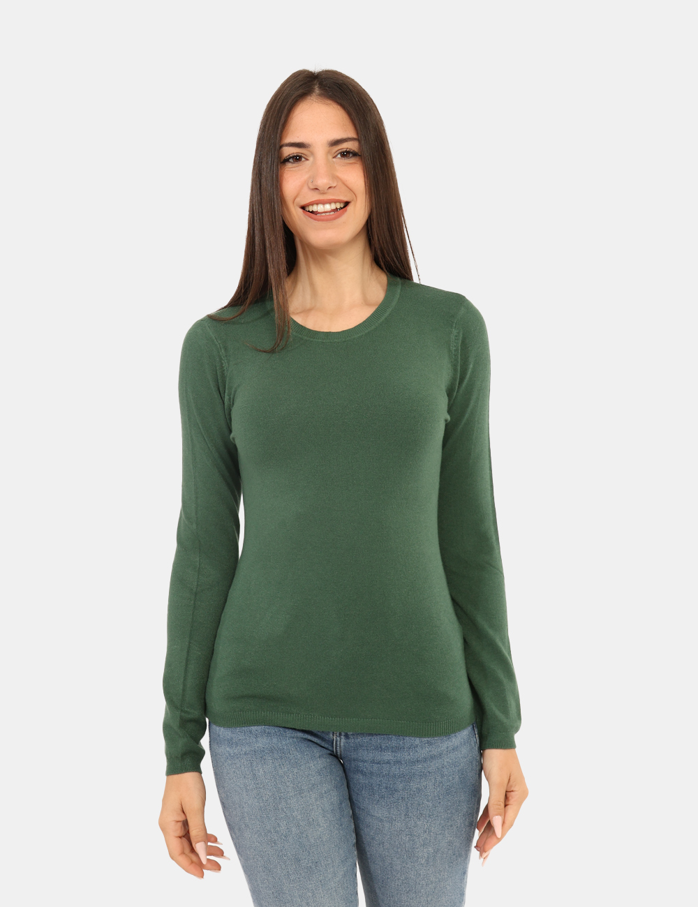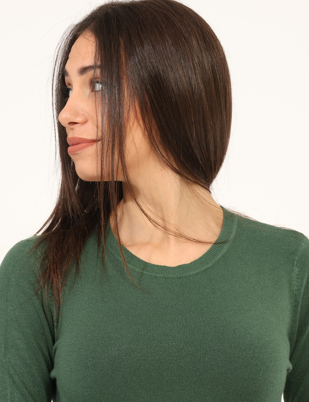 Maglione classico a girocollo in total verde. La vestibilità è morbida e regolare. Il maglione dolcevita è adatto per occasioni casual e facilmente combinabile. Praticità e stile in un solo capo.