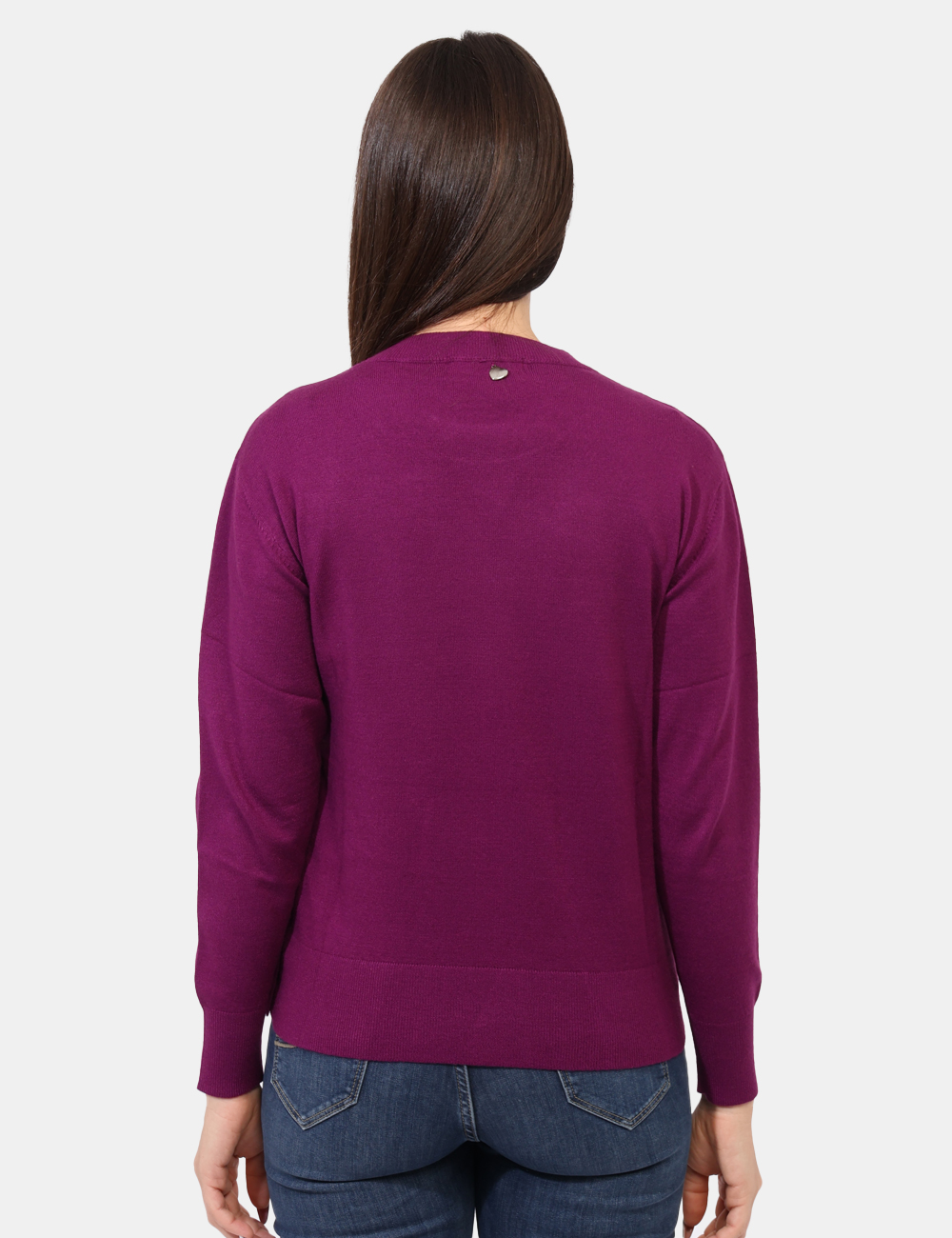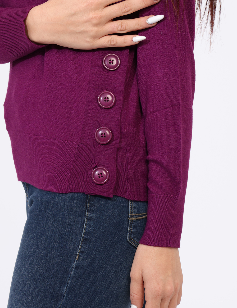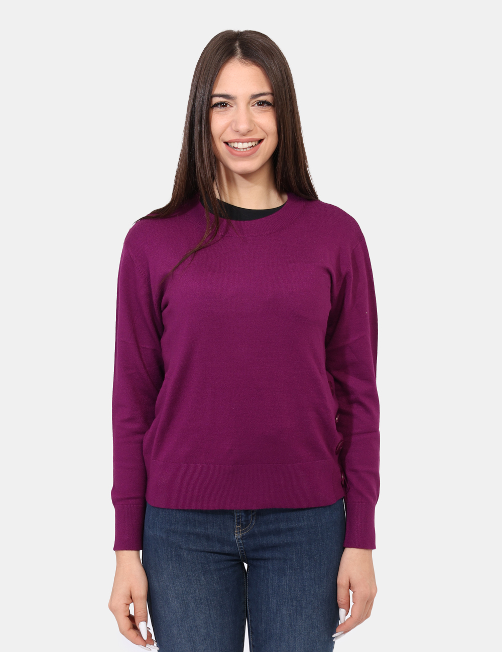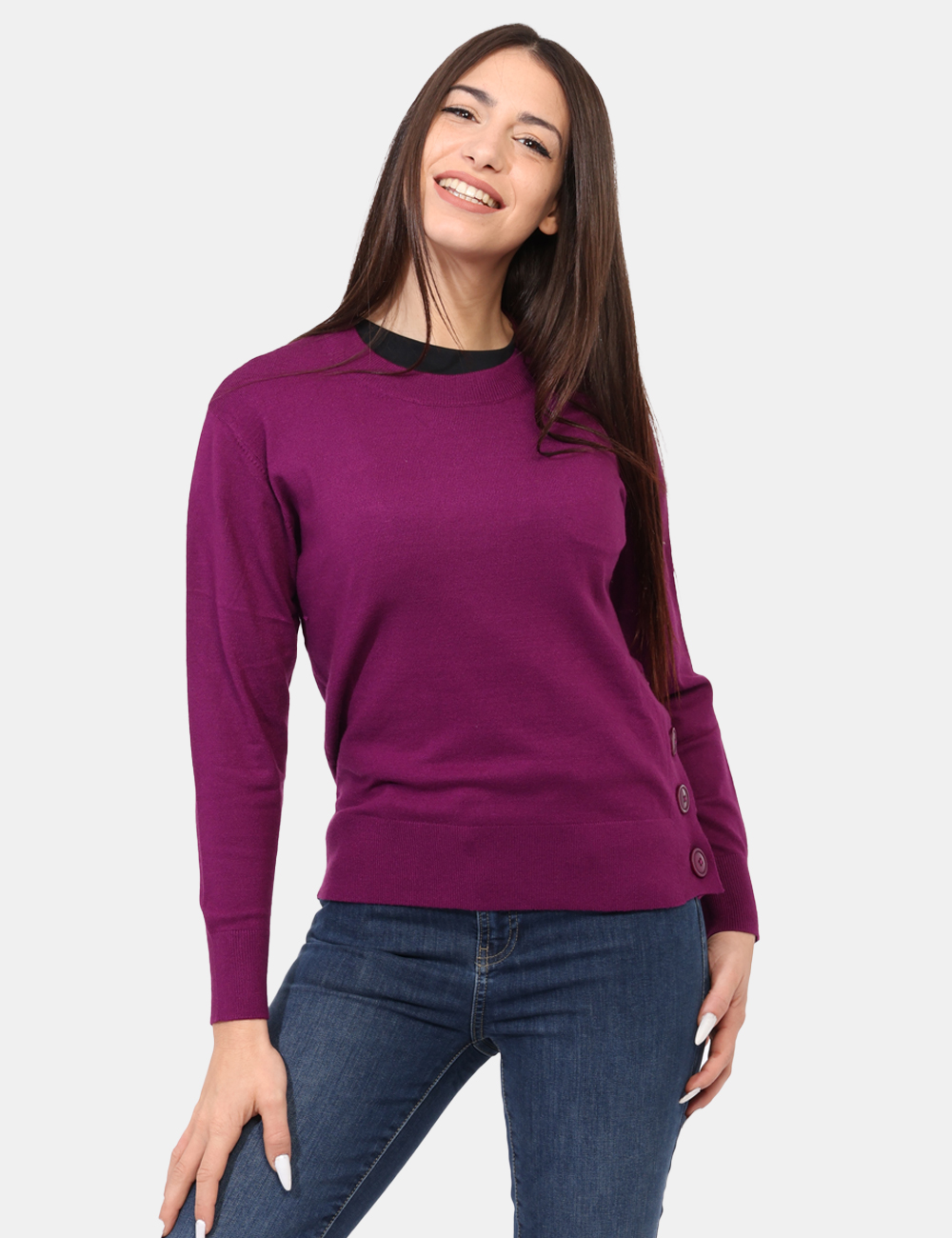 Maglione a girocollo con bottoni sul lato sinistro ed in total viola prugna. La vestibilità è morbida e regolare. Il maglione è adatto per occasioni casual. Aggiungilo al tuo guardaroba per sapere sempre cosa mettere.
