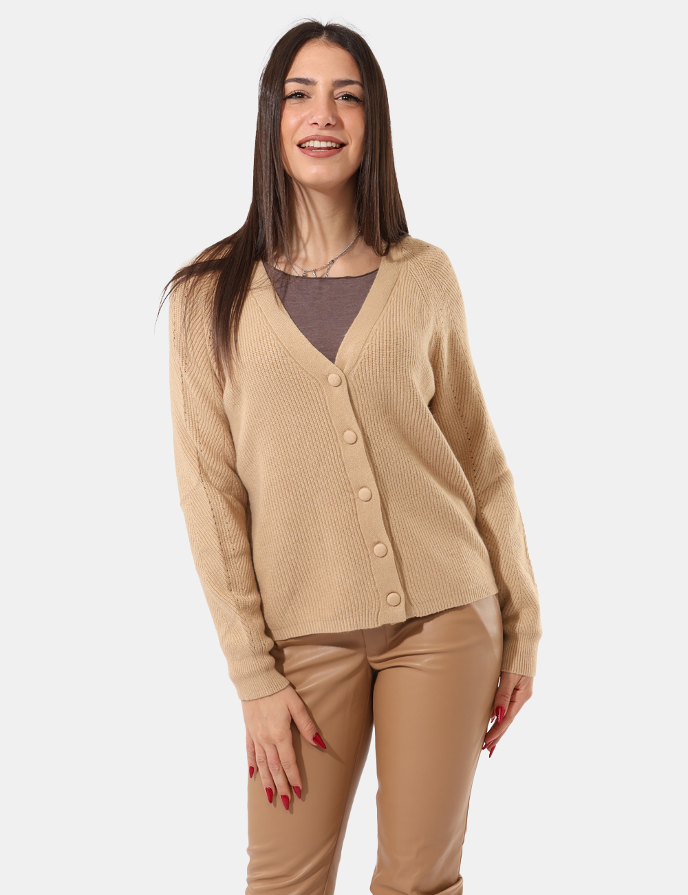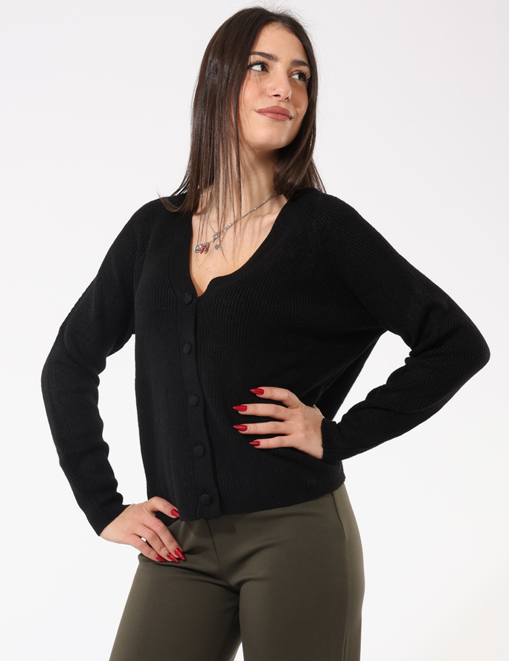 La modella è alta 165 cm e veste la taglia S. La vestibilità del capo è regolare.