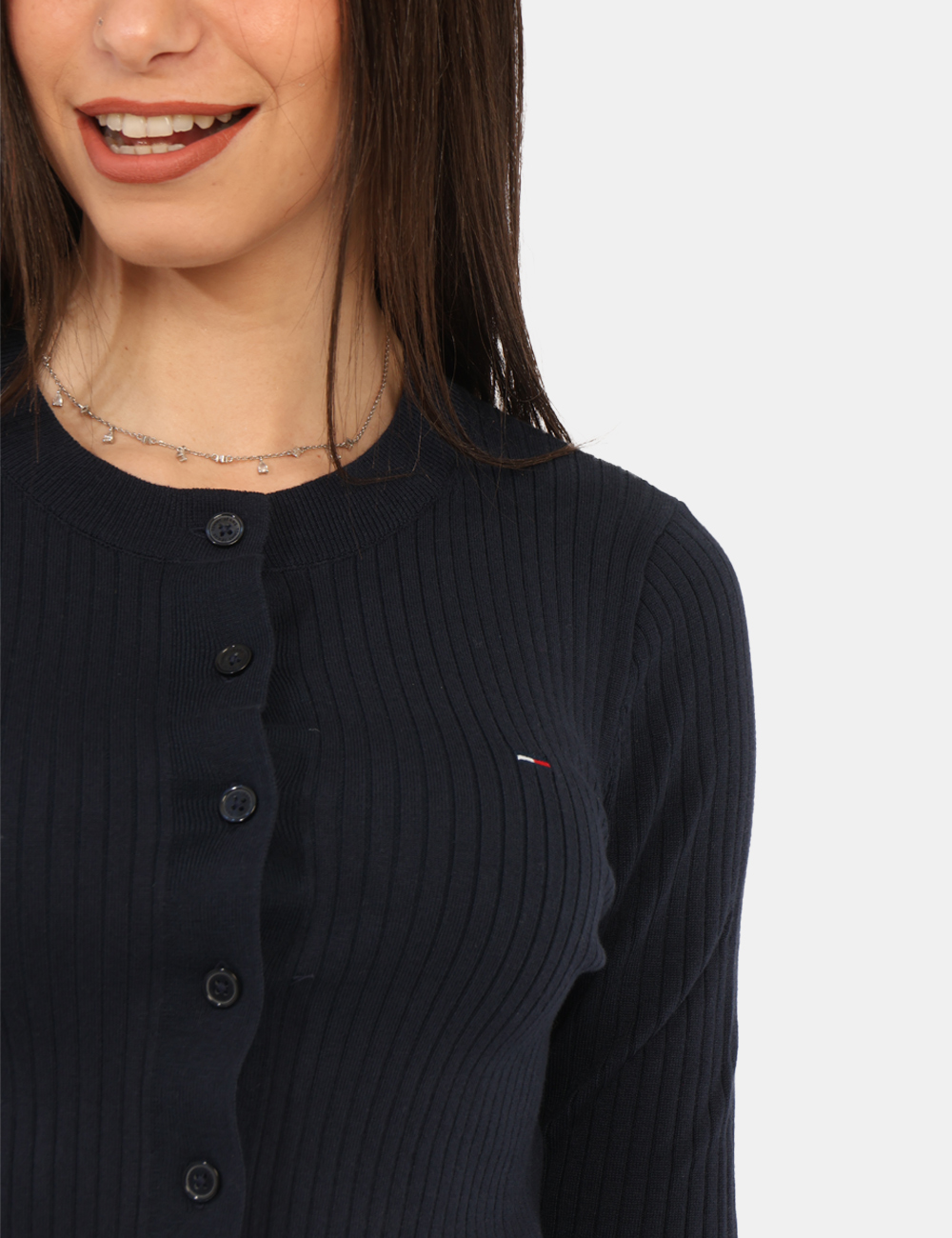 Il Maglione TOMMY HILFIGER Blu da donna è un capo elegante e versatile, pensato per accompagnarti con stile nelle giornate di mezza stagione. Realizzato con una composizione di 65% cotone e 35% poliamide, questo maglione offre un equilibrio perfetto tra morbidezza, leggerezza e resistenza, risultando piacevole da indossare durante tutta la giornata. Il design essenziale è valorizzato da un piccolo logo brand ricamato e da bottoni ad asola in tinta, dettagli raffinati che aggiungono carattere al capo mantenendo uno stile pulito e contemporaneo. Questo maglione da donna adatto alla stagione primavera estate è ideale per creare outfit pratici ma curati, perfetti per affrontare le giornate più fresche con eleganza. La vestibilità regolare valorizza la silhouette senza risultare troppo aderente, offrendo comfort e libertà di movimento. La modella è alta 165 cm e indossa la taglia S, un riferimento utile per orientarti nella scelta della misura più adatta. Puoi indossarlo nel tempo libero, durante una passeggiata in città o in occasioni casual in cui desideri un look semplice ma sempre raffinato. Per un outfit quotidiano puoi abbinarlo a jeans e sneakers per uno stile urbano e dinamico, oppure scegliere pantaloni chiari e scarpe basse per un look primaverile più elegante e femminile. Grazie al suo colore blu intramontabile e ai dettagli curati, questo maglione è un capo facile da abbinare e perfetto per completare il tuo guardaroba di stagione. Su SecondaStrada.com trovi solo prodotti originali selezionati con cura. Questo modello Tommy Hilfiger è autentico ed è identificato dal codice articolo DW0DW22023 OB.
