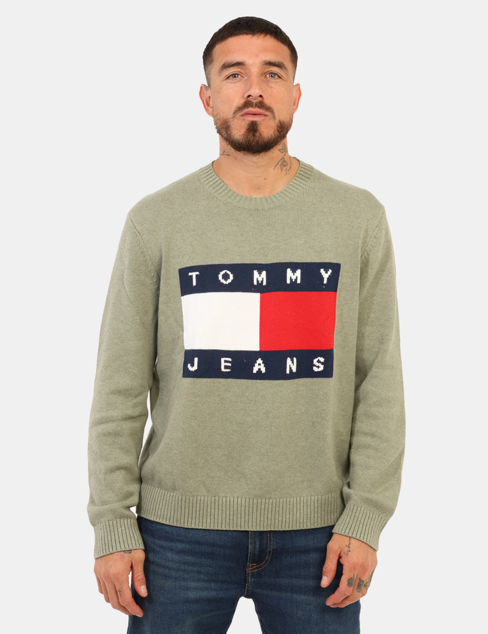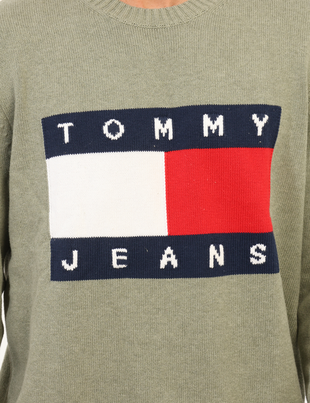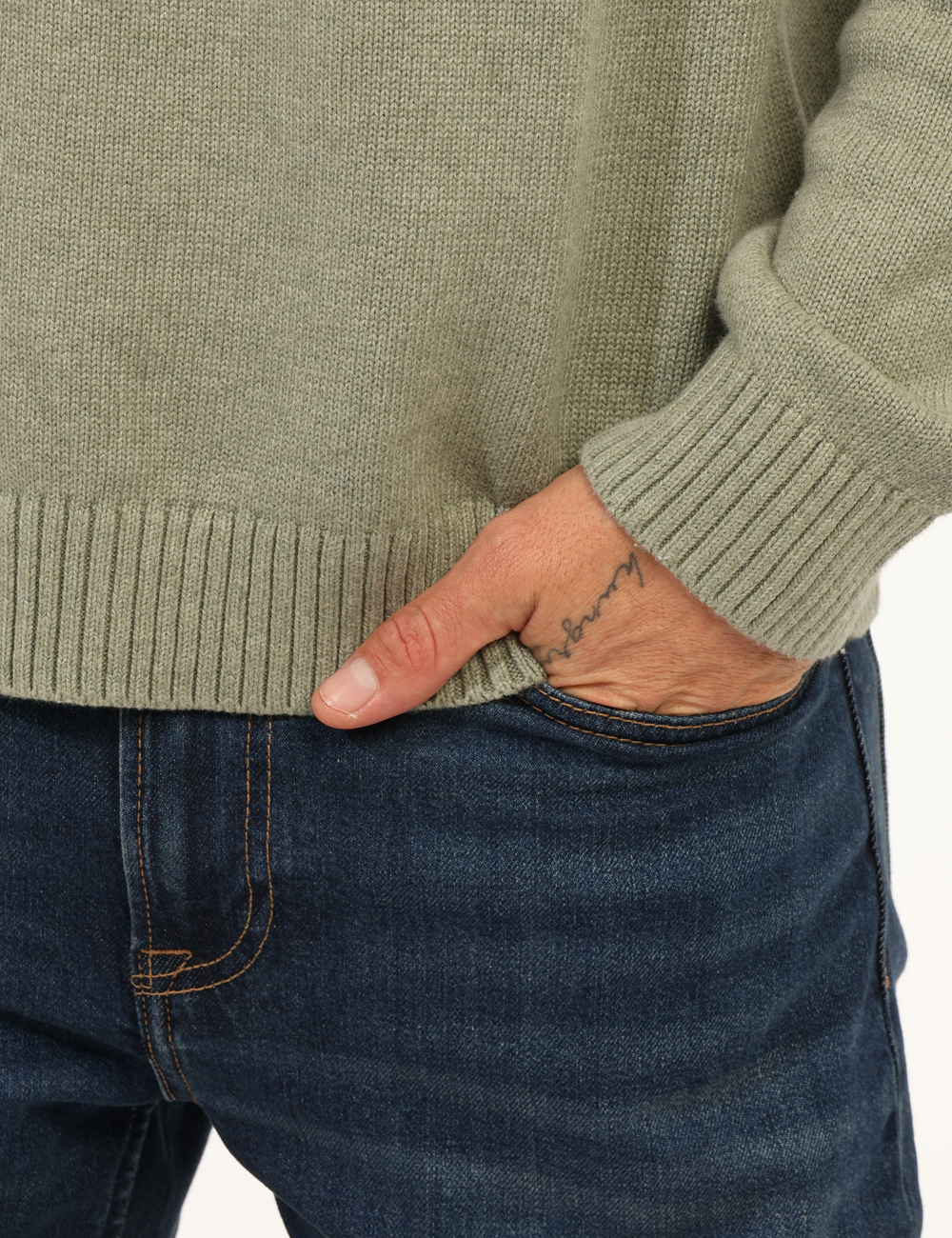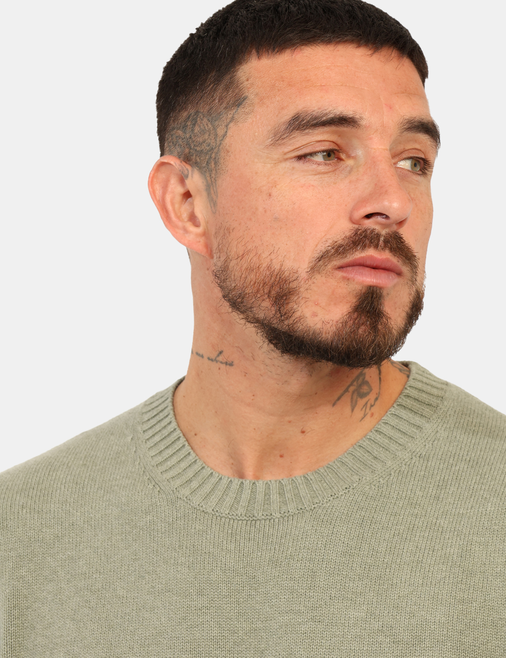 Maglione con girocollo classico, su base verde chiaro con stampa logo brand in tinta originale. La vestibilità è morbida e regolare. Il maglione è adatto per occasioni casual e facilmente combinabile. Praticità e stile in un solo capo.