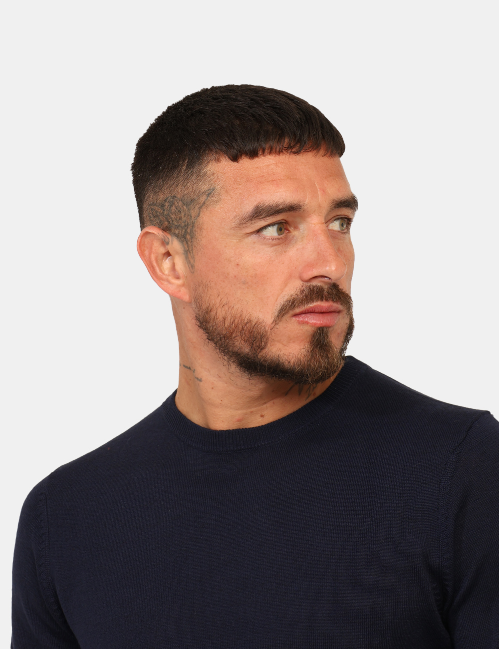 Maglione classico in total blu navy con girocollo. La vestibilità è morbida e regolare. Il maglione è adatto per occasioni casual e facilmente combinabile. Praticità e stile in un solo capo.