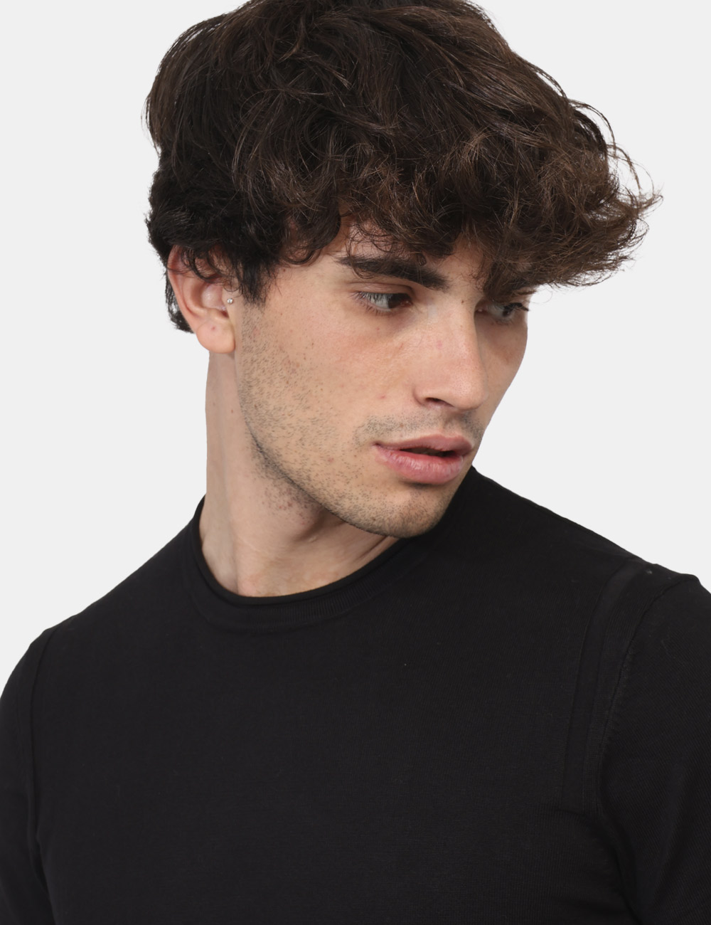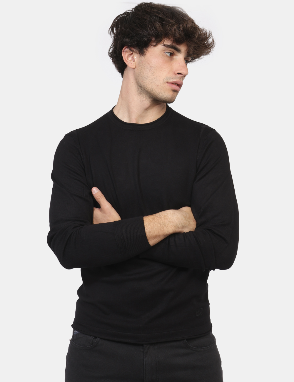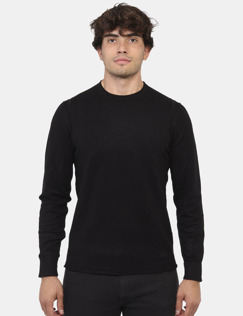 Maglione con girocollo classico in total nero. La vestibilità è morbida e regolare. Il maglione è adatto per occasioni casual e facilmente combinabile. Praticità e stile in un solo capo.