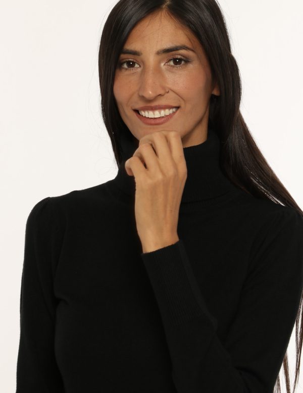 Maglione modello dolcevita a maniche lunghe in total nero. La vestibilità è morbida e regolare. Il dolcevita è adatto per occasioni casual e facilmente combinabile per outfit diurni/serali. Ideale anche come sottogiacca. Praticità e stile in un solo capo.