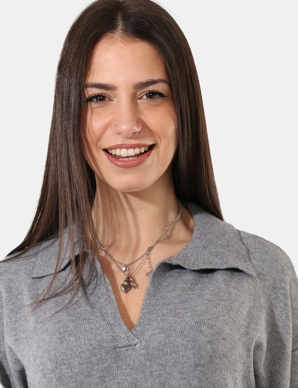 La modella è alta 165 cm e veste la taglia S. La vestibilità del capo è regolare.