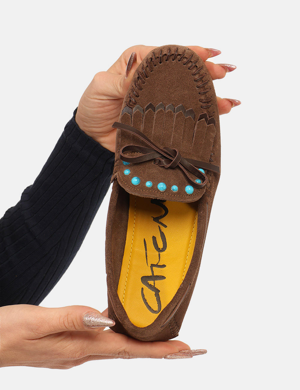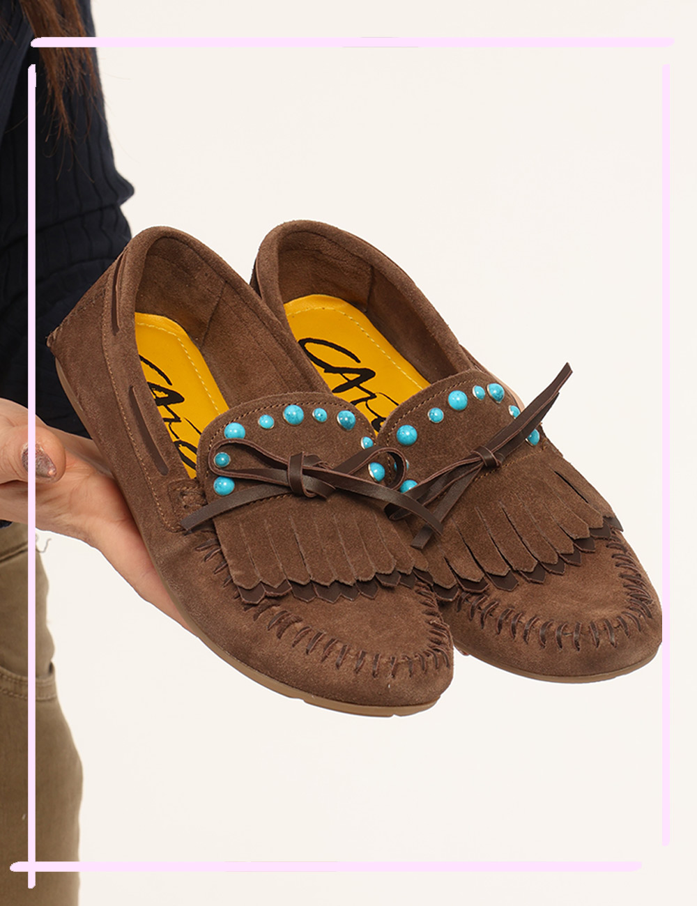 I Mocassini CAFeNOIR Marroni sono la scelta perfetta per chi desidera unire eleganza, comfort e un tocco originale nei propri look quotidiani. Questi mocassini da donna adatto alla primavera estate si distinguono per la loro tonalità marrone calda e raffinata, ideale per creare outfit versatili e sempre attuali durante la stagione più luminosa. Il design è arricchito da particolari perle azzurre a contrasto che donano personalità e un dettaglio decorativo ricercato, rendendo questi mocassini con perle azzurre a contrasto un modello distintivo e femminile. Realizzati in vera pelle, offrono qualità, resistenza e una calzata confortevole che accompagna il piede con naturalezza durante tutta la giornata. La struttura del mocassino garantisce stabilità e praticità, risultando perfetta per affrontare con stile gli impegni quotidiani senza rinunciare all’eleganza. Questo modello appartiene al campionario esclusivo di stagione ed è disponibile come pezzo unico nella taglia 37, un dettaglio che lo rende particolarmente speciale per chi ama indossare articoli originali e ricercati. I Mocassini CAFeNOIR Marroni sono ideali da indossare nel tempo libero, per una passeggiata in città, una giornata di shopping o un incontro informale. Puoi abbinarli facilmente a shorts e blusa per un look estivo elegante e leggero oppure a jeans per uno stile casual raffinato e contemporaneo. Versatili e ricercati, rappresentano una scelta ideale per completare con stile il tuo guardaroba della stagione primavera estate. Tutti i prodotti disponibili su SecondaStrada.com sono originali e accuratamente selezionati. Codice articolo C1EF6003 CA CB.