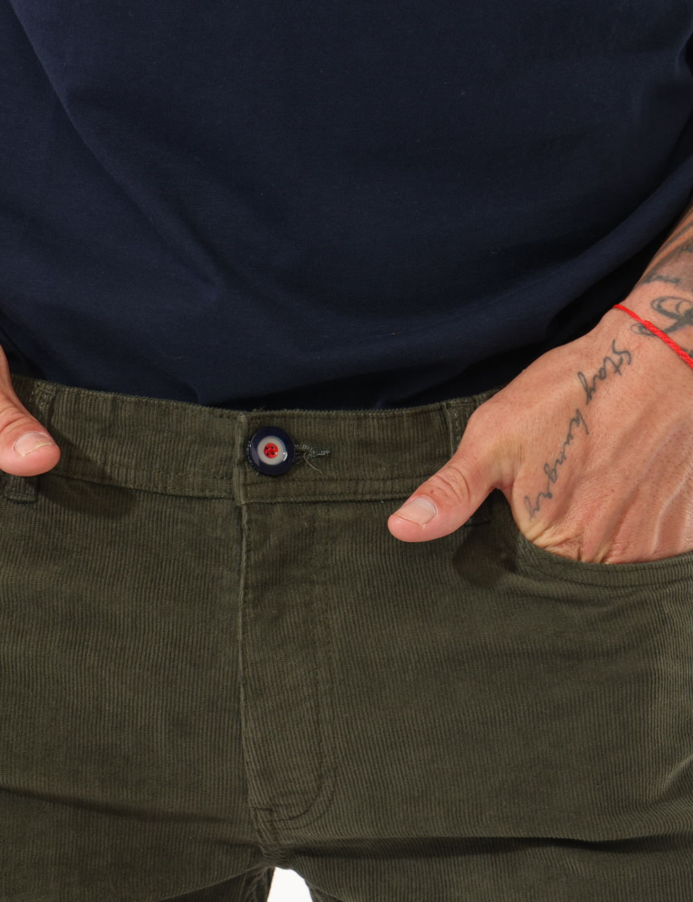 Il modello è alto 187 cm e veste la taglia L. La vestibilità del capo è regolare.