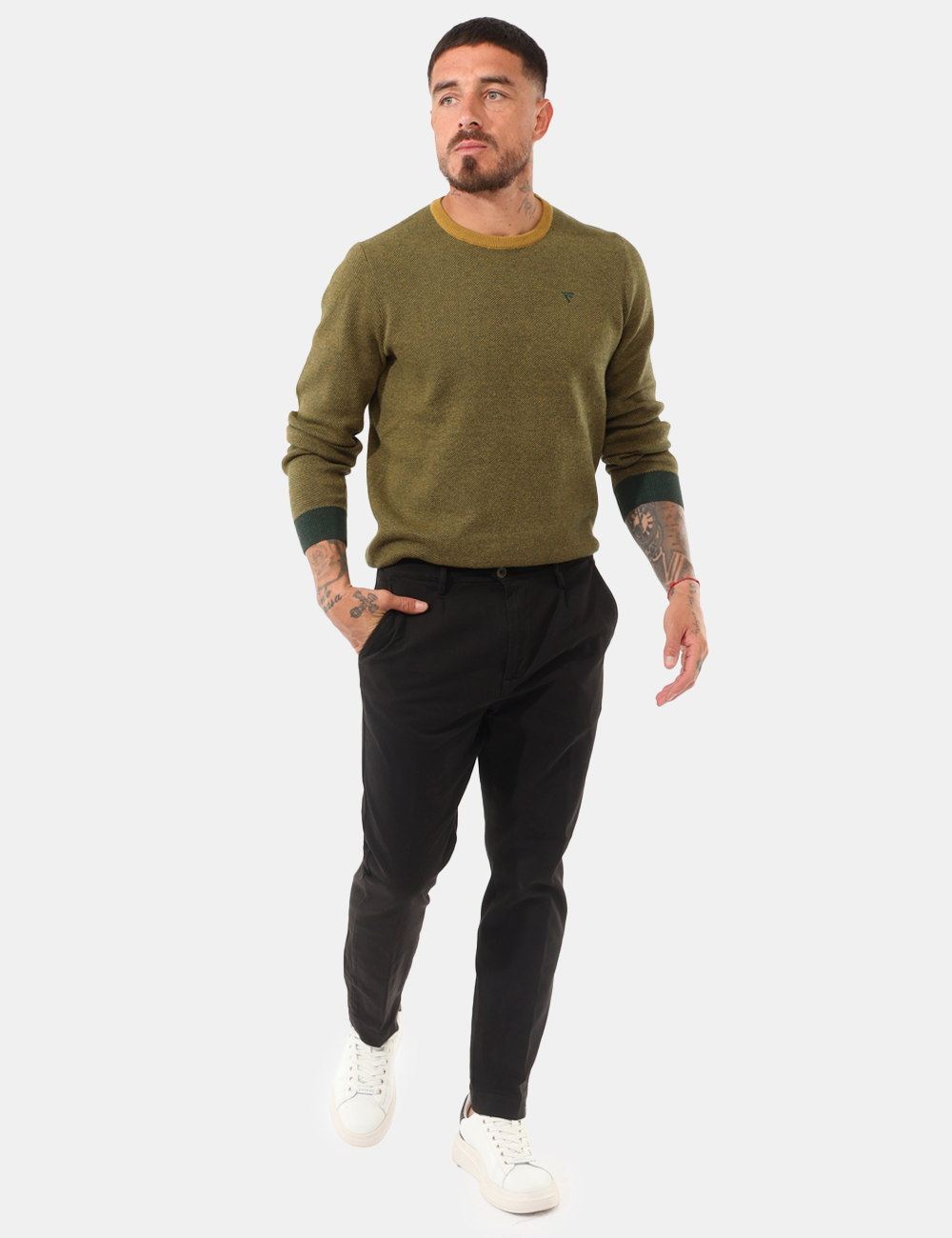 Il modello è alto 187 cm e veste la taglia L. La vestibilità del capo è regolare.
