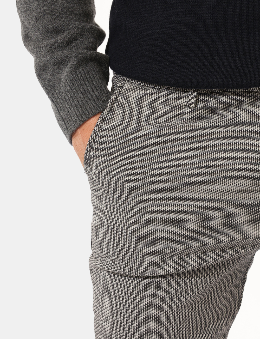 Il modello è alto 187 cm e veste la taglia L. La vestibilità del capo è regolare.