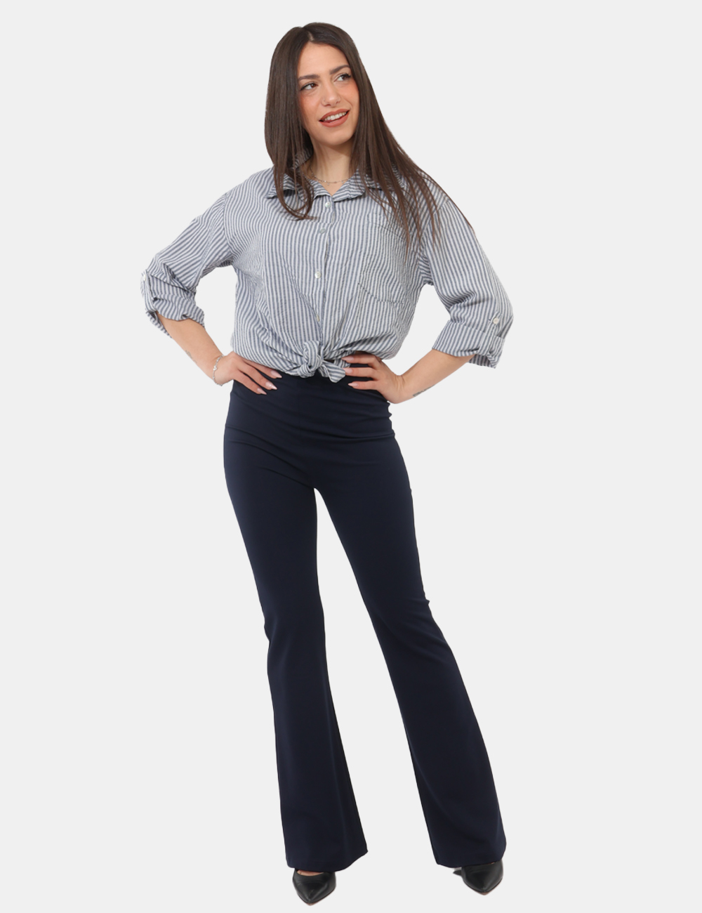 Questo pantalone con elastico in vita e con zampa sul fondo è pensato per adattarsi facilmente al tuo stile, diventando un capo versatile e sempre attuale nel tuo guardaroba.