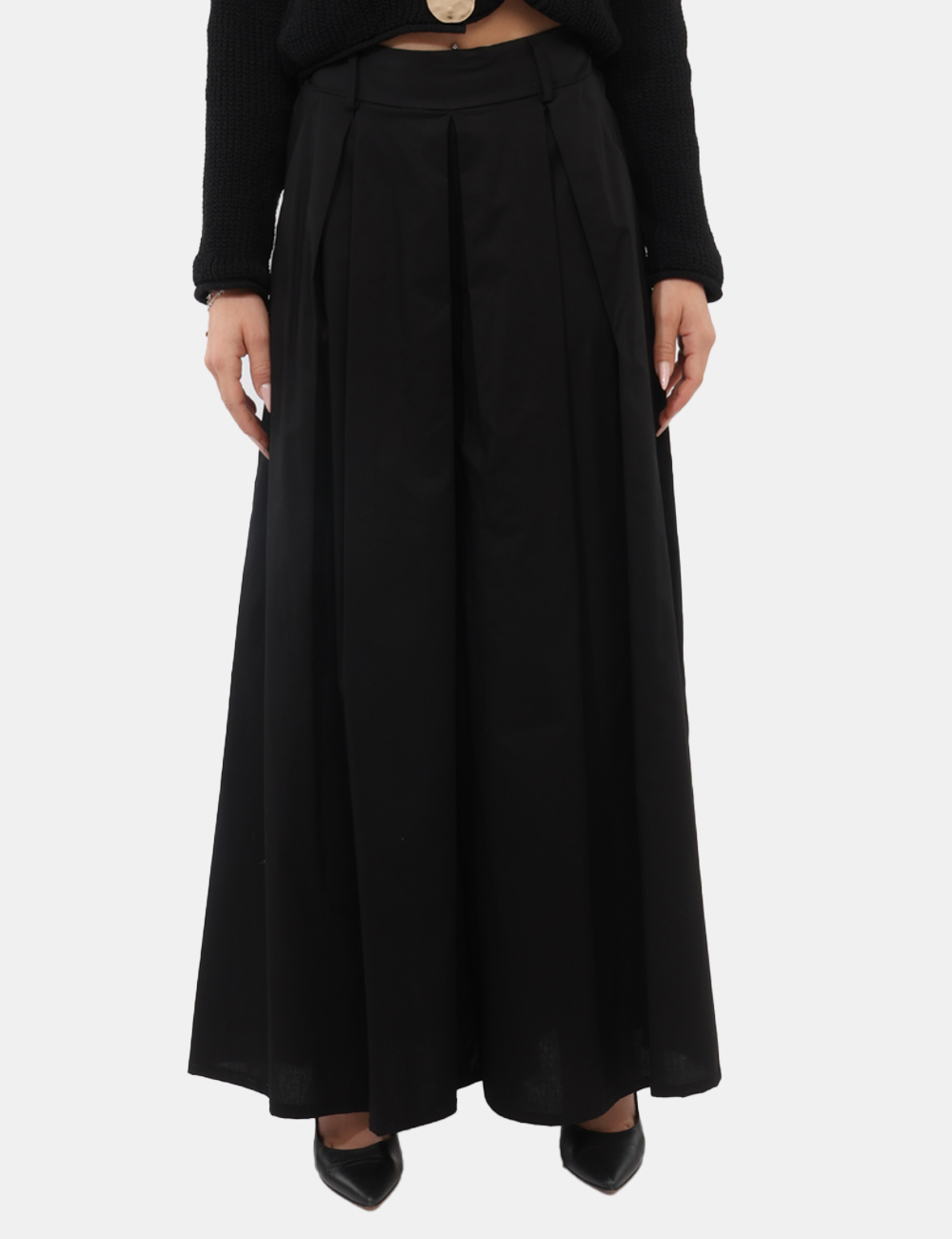 Perfetto con un top leggero o una blusa per un outfit equilibrato, oppure abbinato a scarpe basse per uno stile pratico ma sempre ricercato.