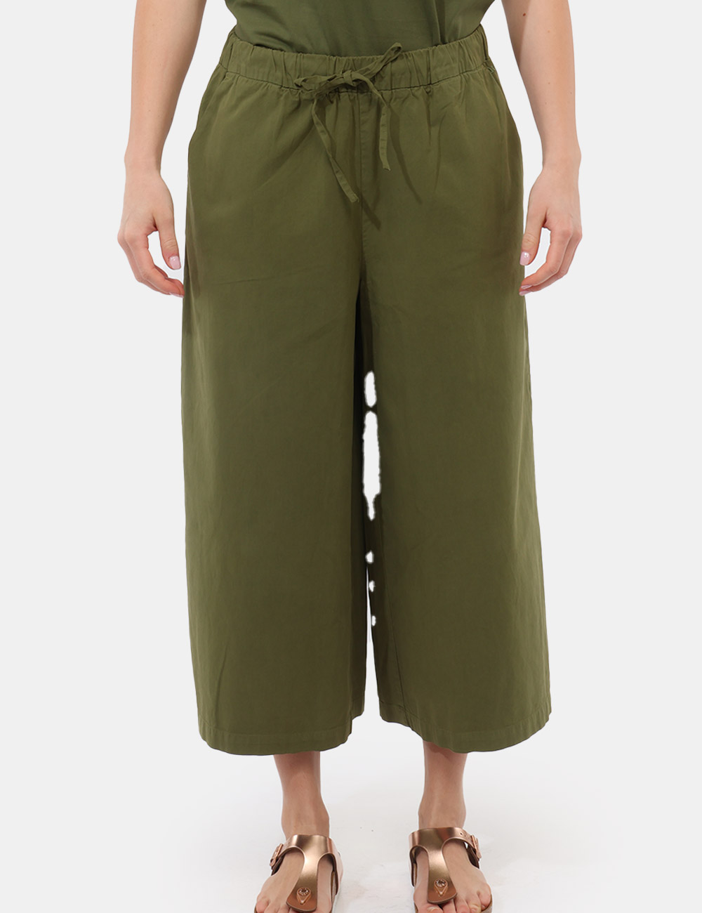 Questo pantalone da donna adatto alla primavera estate si distingue per la sua linea moderna e rilassata. Il pantalone con gamba larga e corta con coulisse ed elastico valorizza la silhouette con naturalezza, lasciando libertà di movimento e un fit disinvolto. L’elastico in vita con coulisse aggiunge praticità e permette una regolazione semplice, rendendo il capo ideale per un utilizzo quotidiano.La vestibilità è regolare e la modella, alta 165 cm, indossa una taglia M.