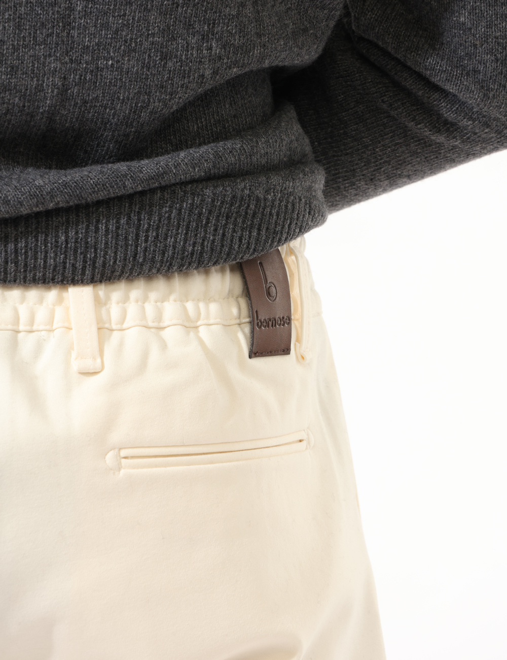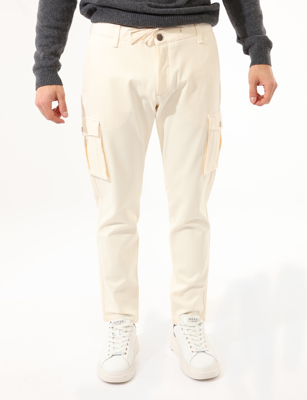 Pantaloni in tessuto total bianco panna, con tasche a taglio trasversale e tasche fake sul retro. La vestibilità è morbida e pratica grazie a bottone più zip e regolabile grazie a coulisse in girovita con laccio coodinabile. I pantaloni sono adatti per occasioni casual/raffinate e facilmente combinabili. Dona un tocco di stile ai tuoi outfit invernali.