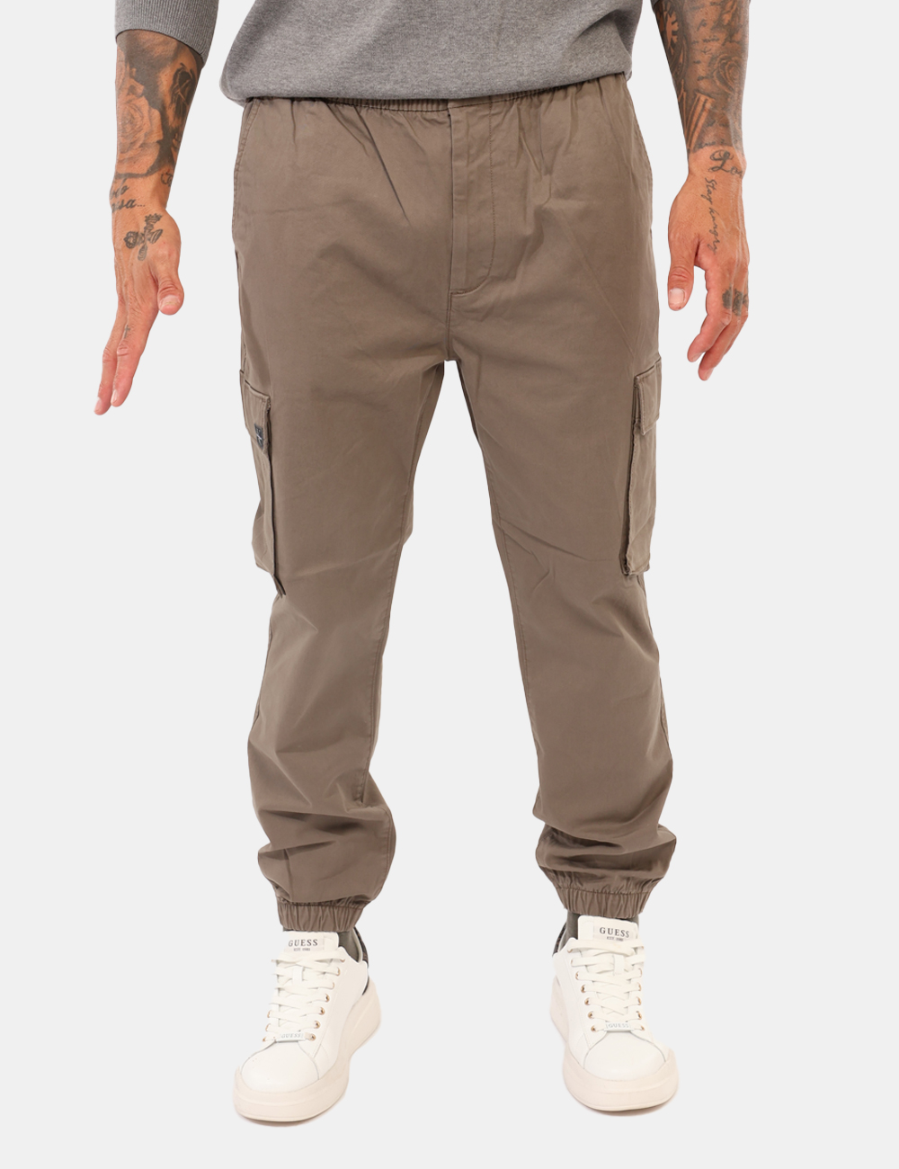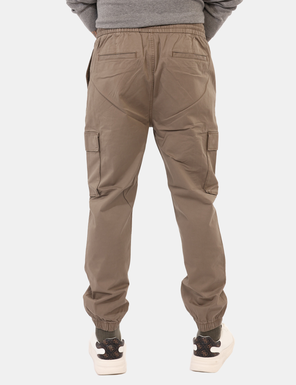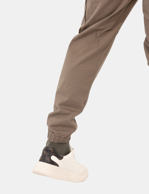 Pantaloni cargo in total grigio, con tasche a taglio sul fronte e sul retro più tasche laterali. La vestibilità è morbida e pratica grazie a bottone più zip, ma anche regolabile grazie a coulisse in girovita con cordino abbinato. I pantaloni sono adatti per occasioni casual e facilmente combinabili. Troppo comodi per poterne fare a meno.