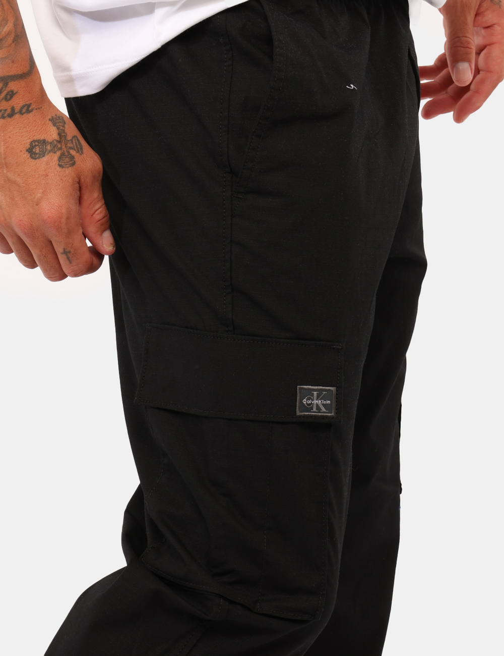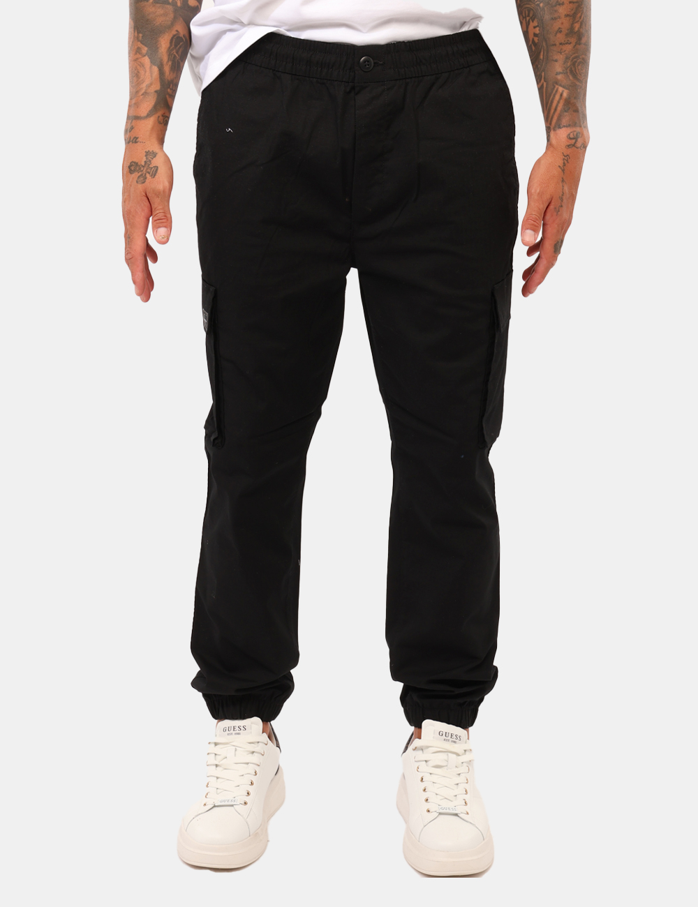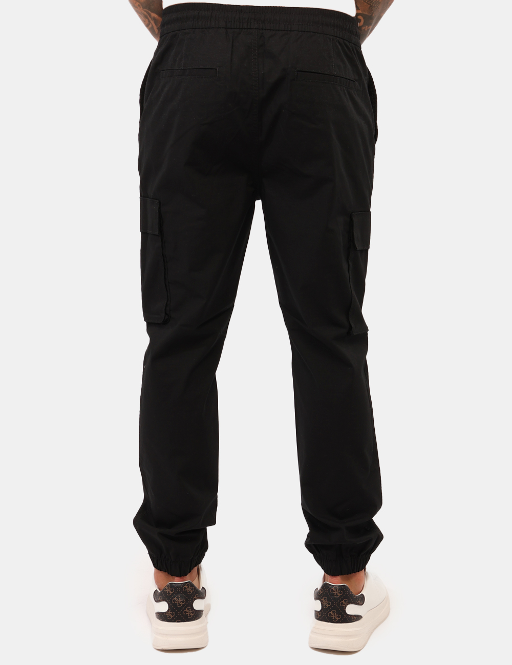 Pantaloni cargo in total nero con tasche a taglio trasversale, tasche laterali e tasche a toppa sul retro. La vestibilità è morbida e regolabile grazie a bottone più zip. I pantaloni sa sono adatti per occasioni casual e facilmente combinabili. Dona un tocco di stile ai tuoi outfit.