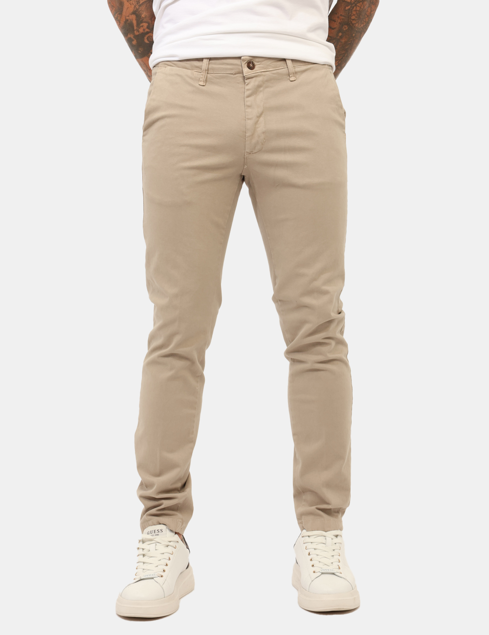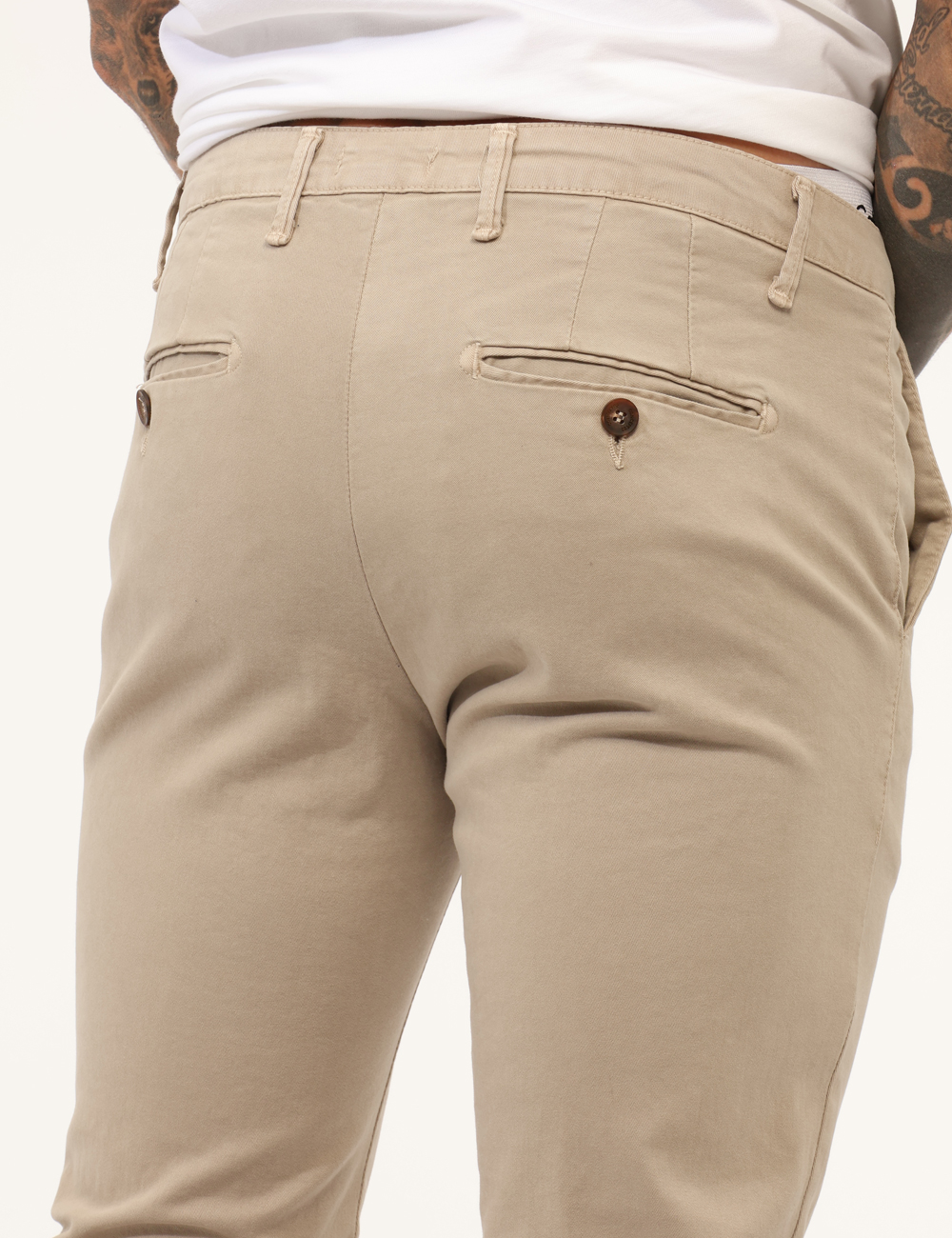 Pantaloni in total beige, con tasche a taglio trasversale sul fronte e tasche a fessura con bottone sul retro. La vestibilità è morbida e pratica grazie a bottone più zip. I pantaloni sono adatti per occasioni casual e facilmente combinabili. Aggiungili al tuo guardaroba e saprai sempre cosa indossare.