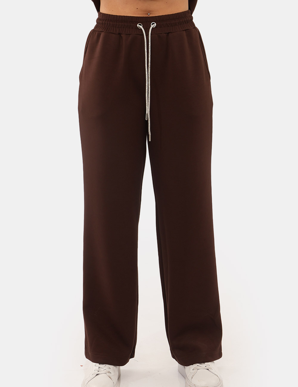 Per un outfit coordinato e pratico, puoi abbinarli a una felpa della stessa linea e sneakers; se preferisci uno stile più minimal, indossali con una t-shirt e scarpe basse. Il colore marrone, caldo e naturale, si abbina facilmente e dona un tocco sofisticato anche ai look più semplici.