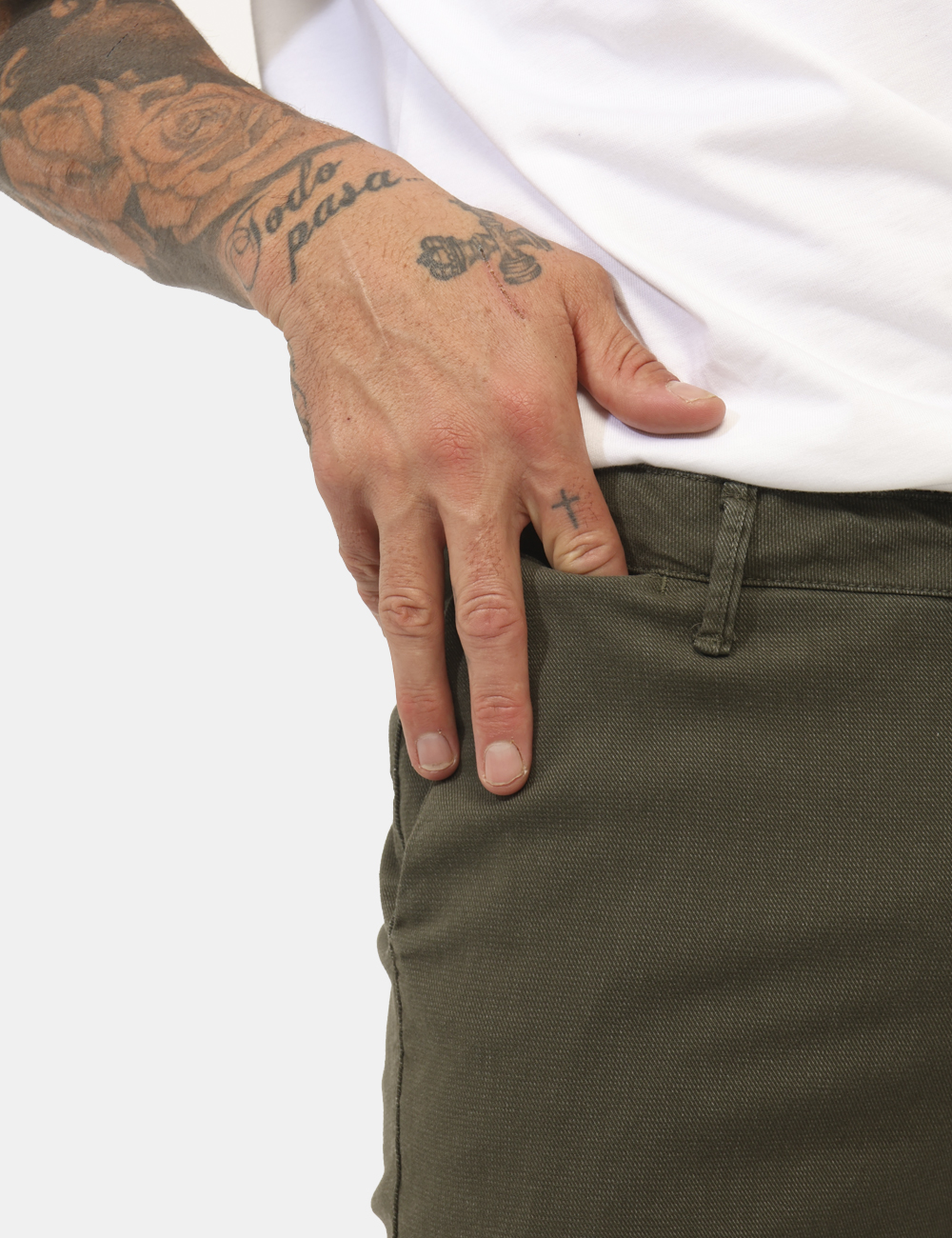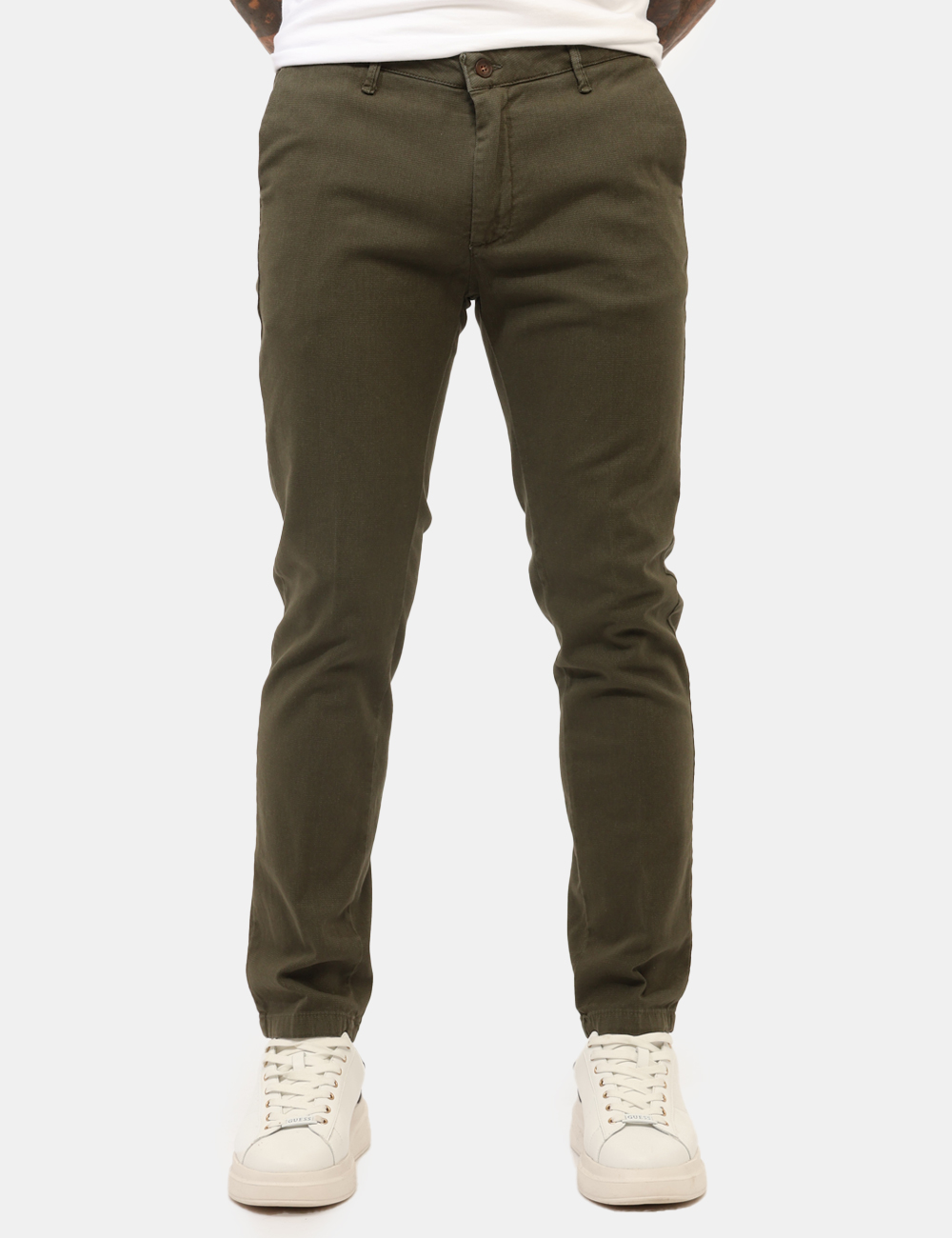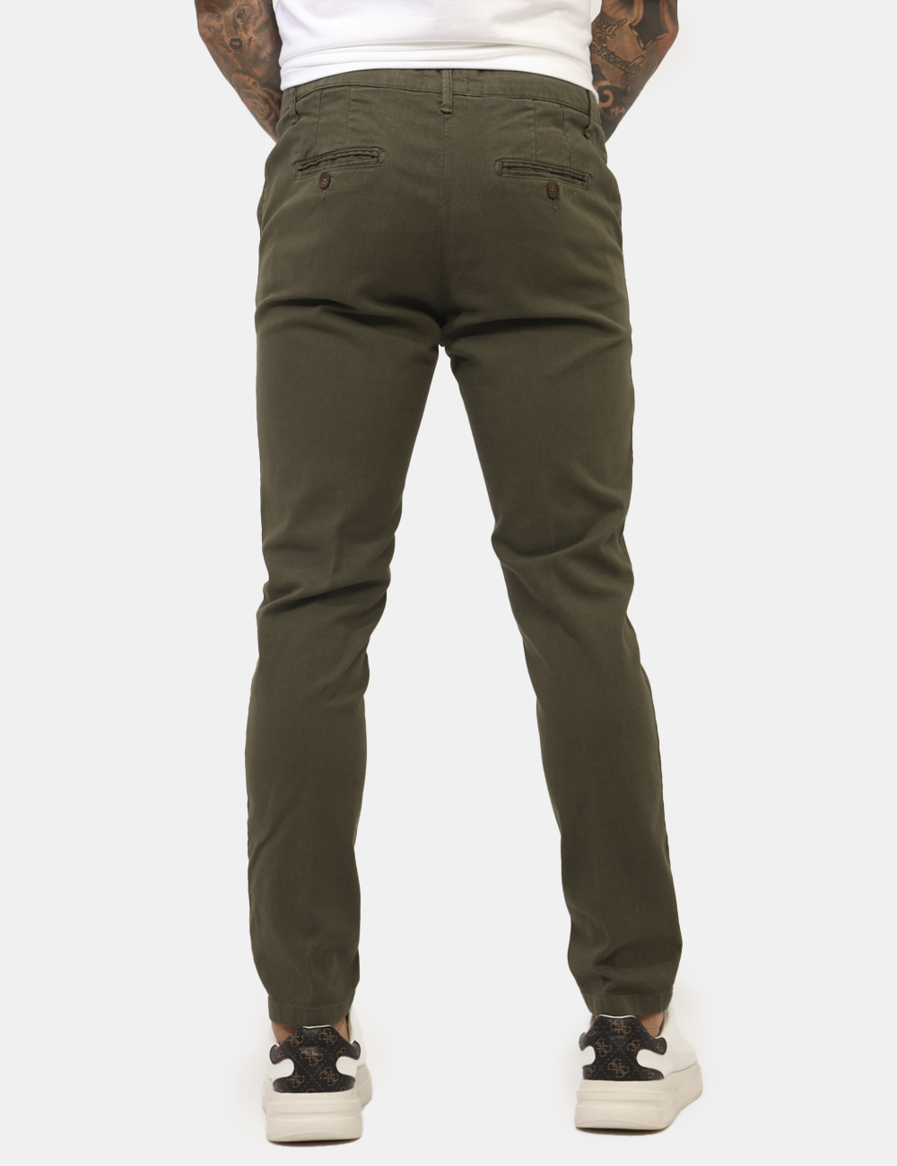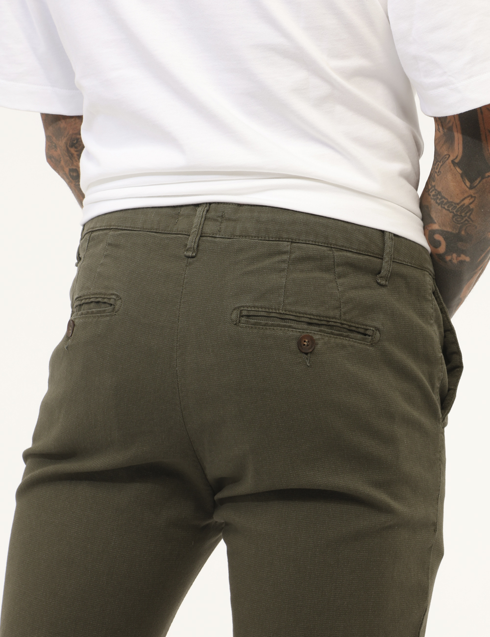 Pantaloni classici, total verde militare, con tasche a taglio trasversale e tasche a fessura con bottone ad asola. La vestibilità è morbida e pratica grazie a bottone più zip. I pantaloni sono adatti per occasioni casual e facilmente combinabili. Indossali una volta e scopri di non poterne più fare a meno.