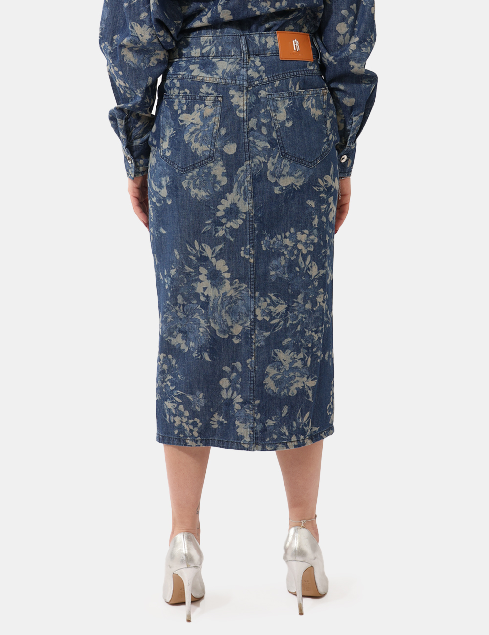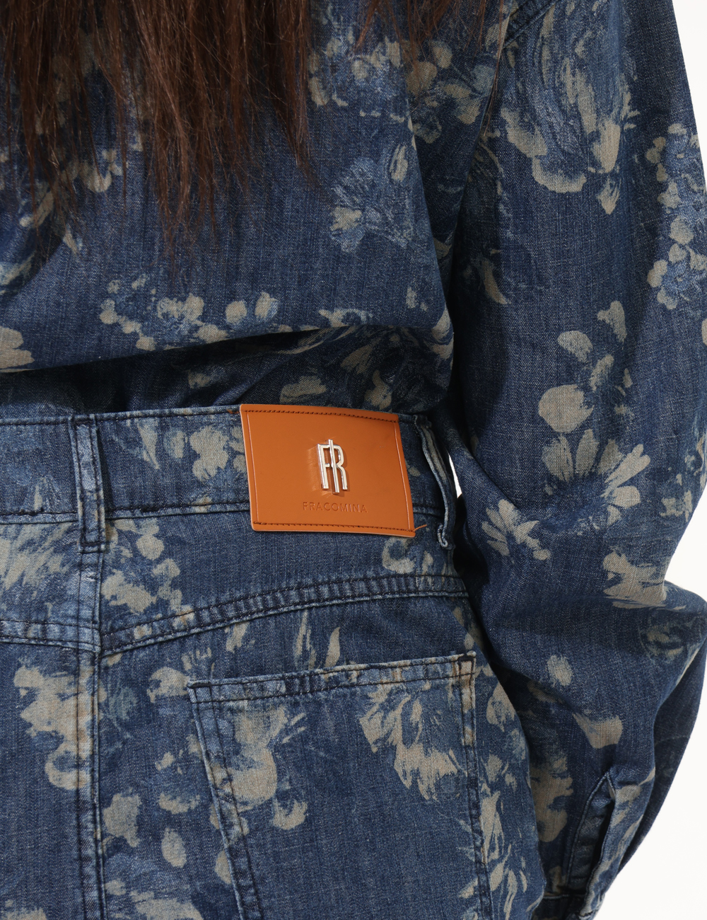 La modella è alta 165 cm e indossa la taglia 27 US corrispondente alla 40/42 italiana. La vestibilità del capo è regolare. Pezzo unico di campionario