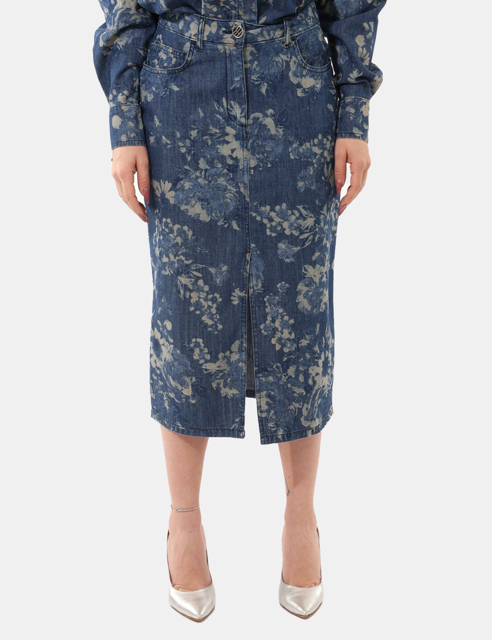 Il design si distingue per i dettagli curati: Pantaloni con in fantasia floreale allover, tasche, bottone e zip, elementi che uniscono stile e praticità. La fantasia floreale su base blu dona un tocco vivace e romantico, perfetto per la bella stagione, mentre la chiusura con bottone e zip garantisce una vestibilità stabile e confortevole.