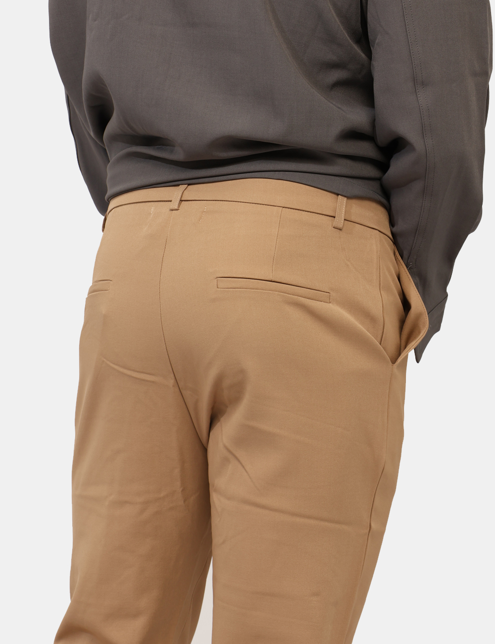 Pantaloni morbidi in total marrone cammello con tasche a taglio trasversale. La vestibilità è pratica grazie a bottone ad asola più zip. I pantaloni sono adatti per occasioni casual e facilmente combinabili. Dona un tocco di stile ai tuoi outfit.